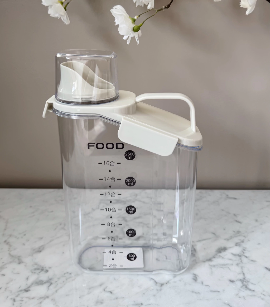 Mantené tu cocina ordenada con el Contenedor Adrella, el organizador ideal para almacenar alimentos secos. Fabricado en plástico transparente con tapa blanca, permite visualizar el contenido fácilmente. Su pico vertedor y medidor incorporado facilitan el uso diario. Con capacidad de 2800ml y medidas de 17,5x10,5x30cm, es perfecto para cereales, legumbres o harinas, optimizando espacio y frescura en tu hogar.