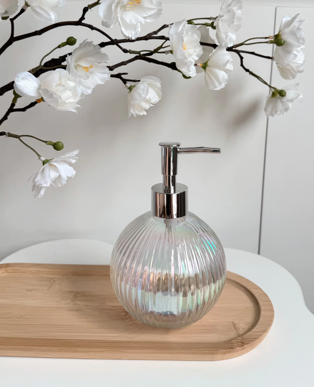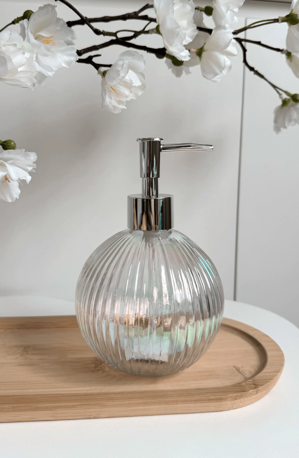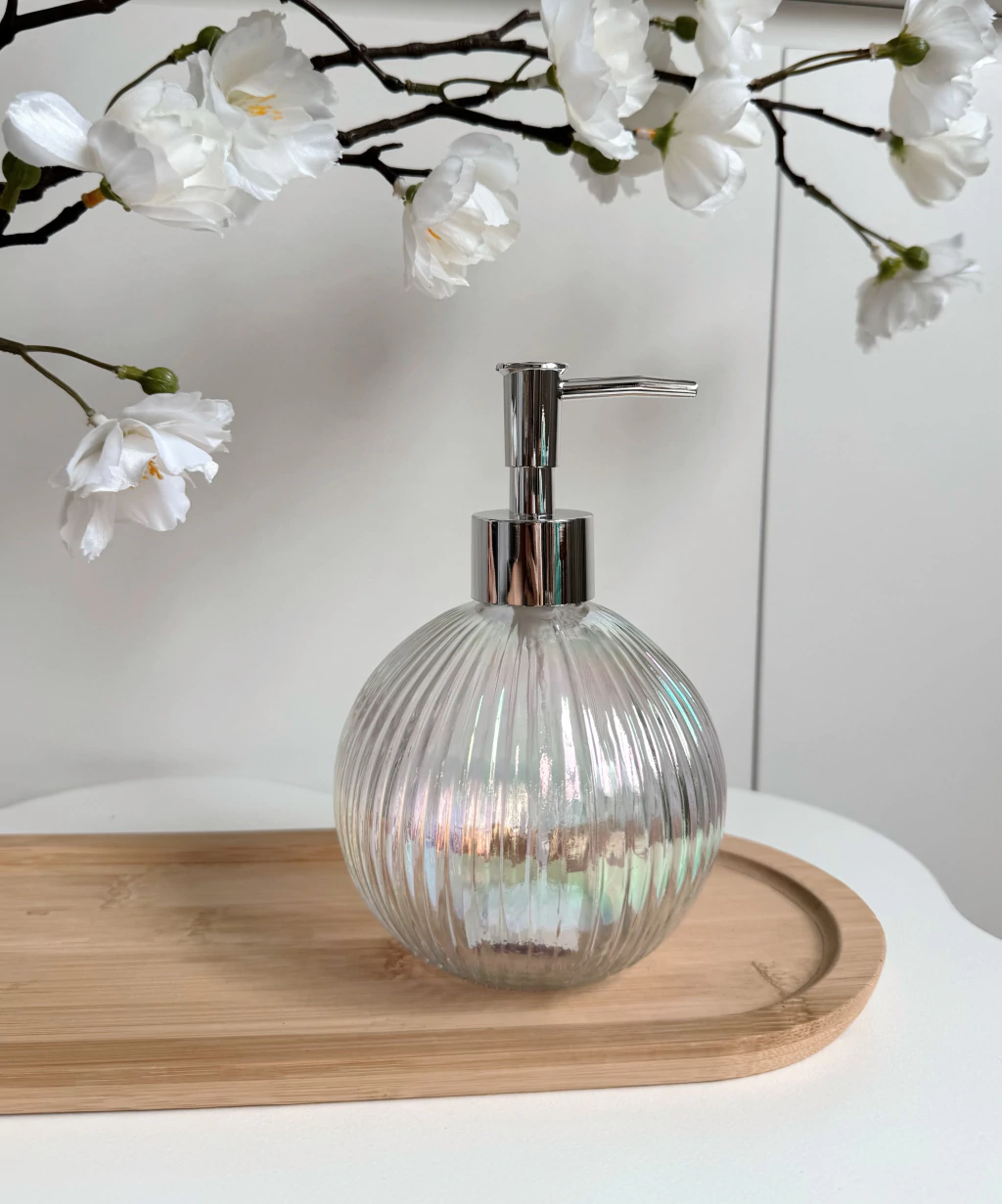 Descubrí el Dispenser Seraphica, elaborado en vidrio perlado con elegantes rayas finas. Sus dimensiones de 10,2 x 10,2 x 16,2 cm y capacidad de 450 ml lo hacen ideal para jabón líquido o lociones. Su diseño redondo aporta sofisticación y modernidad a baños y cocinas. Fácil de rellenar y limpiar, este dispenser combina funcionalidad y estilo para realzar cualquier ambiente de tu hogar.