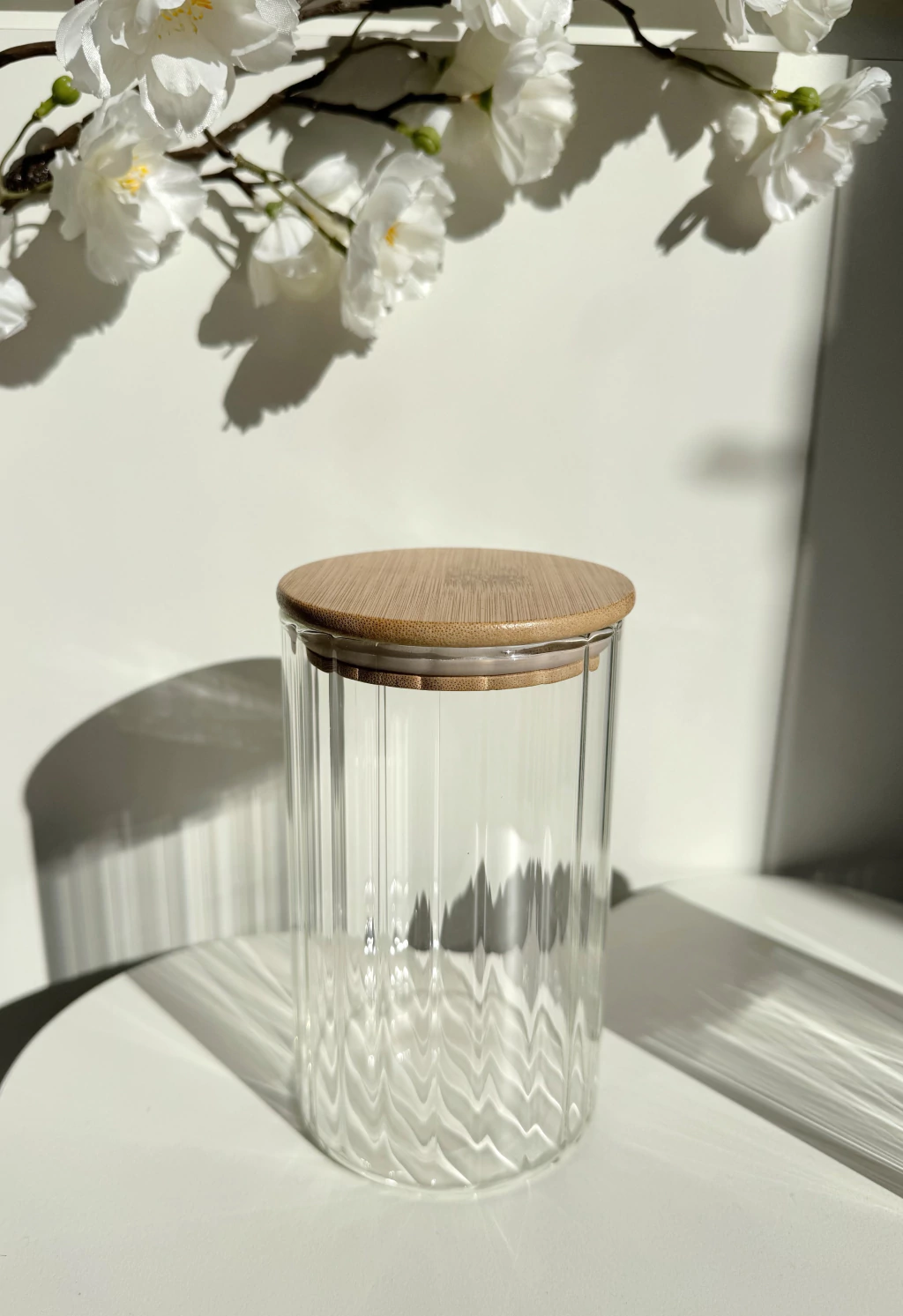 El Frasco Cassie 950ml es ideal para organizar tu cocina con estilo y practicidad. Fabricado en vidrio acanalado de alta calidad, resalta por su diseño elegante y su tapa de bamboo natural, que asegura frescura y protección. Sus medidas de 9x15 cm lo hacen perfecto para almacenar especias, cereales o galletitas, manteniendo todo a la vista y ordenado. Añadí funcionalidad y diseño sustentable a tu hogar.