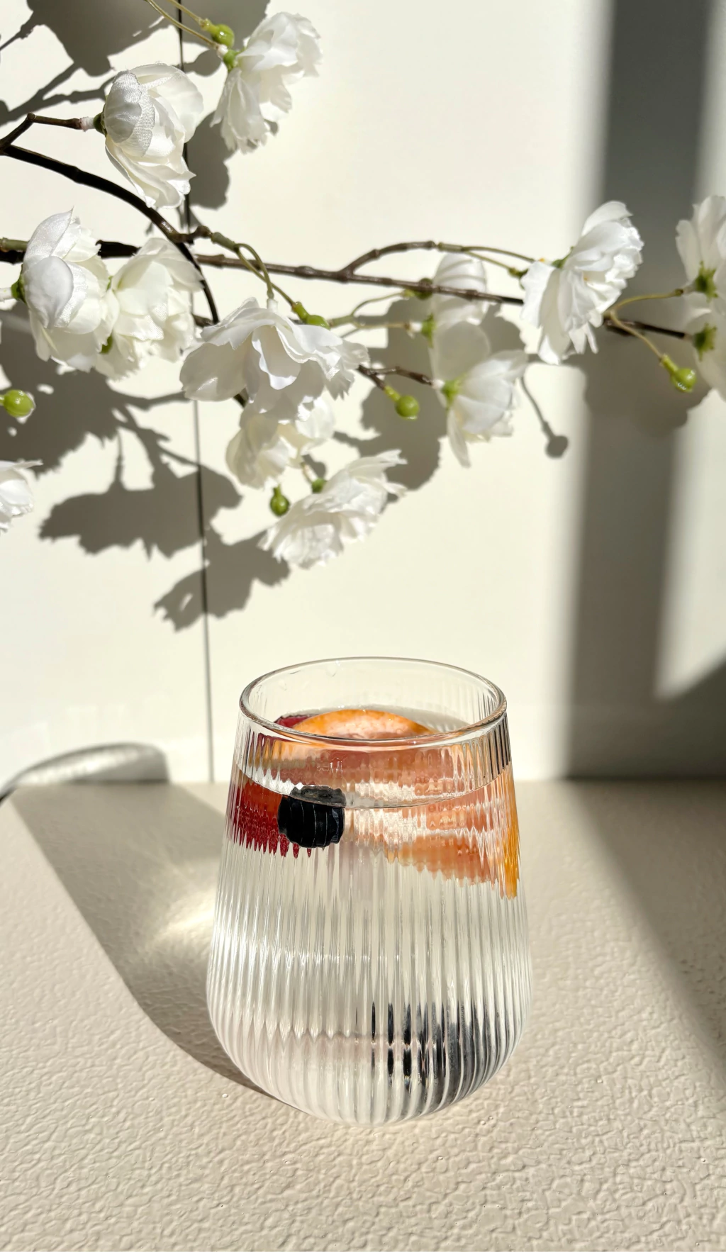 Vaso Hugito 450ml Disfrutá tus bebidas preferidas con el vaso de vidrio bombe rayado Hugito. Su diseño elegante y rayado realza cualquier mesa, mientras que su capacidad de 450ml y medidas (boca: 7cm, 9x11cm) lo hacen ideal para agua, jugos o cócteles. Resistente y fácil de limpiar, es perfecto para el uso diario en tu hogar o eventos especiales.