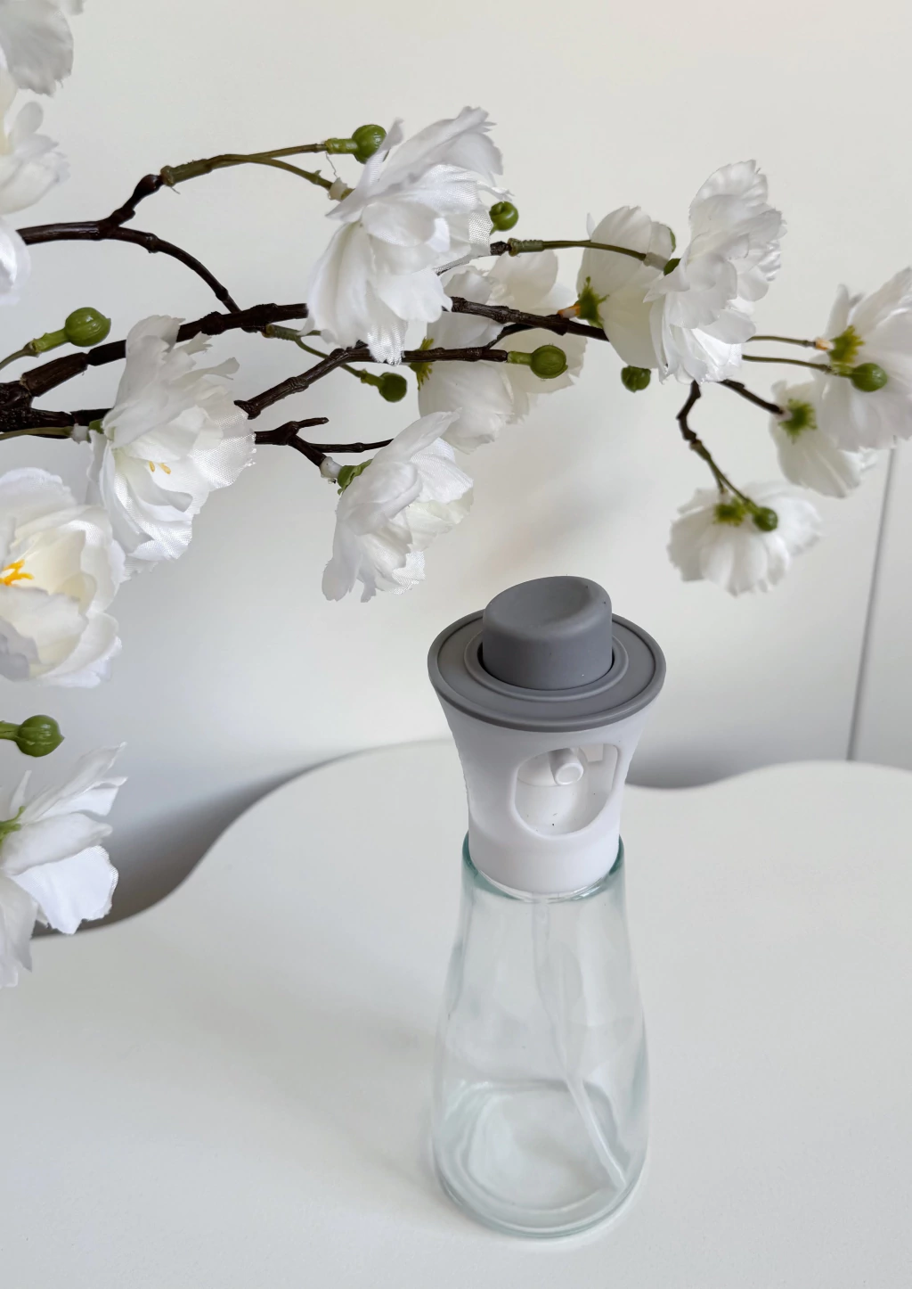 Aceitera de vidrio cónica Avo con rociador y tapa plástica en blanco y gris, ideal para dosificar aceite en tus comidas de manera práctica y elegante. Sus medidas compactas de 5,7 x 17 cm la hacen perfecta para cualquier cocina. El diseño moderno y funcional asegura fácil manejo y limpieza, aportando un toque sofisticado mientras cuidás la presentación de tus platos.