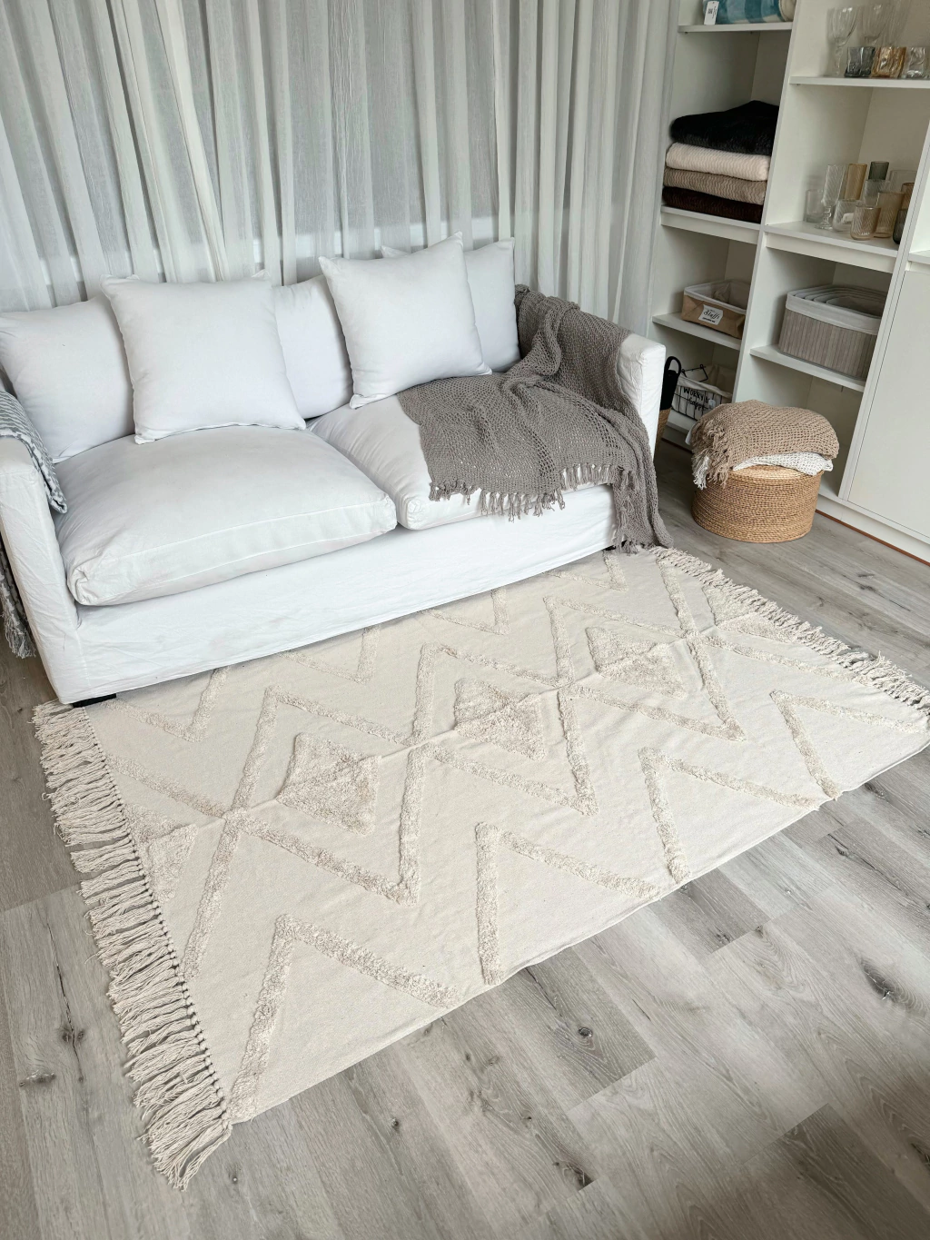 Sumá calidez y estilo a tus ambientes con la Alfombra de algodón con rombos de pelo natural. Con un tamaño de 160 cm de ancho x 230 cm de alto, es ideal para living, dormitorio o espacios de relax. Su diseño de rombos aporta un toque moderno y natural, creando un ambiente confortable y armonioso. Fácil de combinar y mantener, es la opción perfecta para tu hogar.