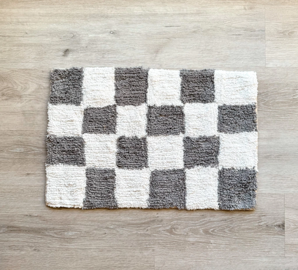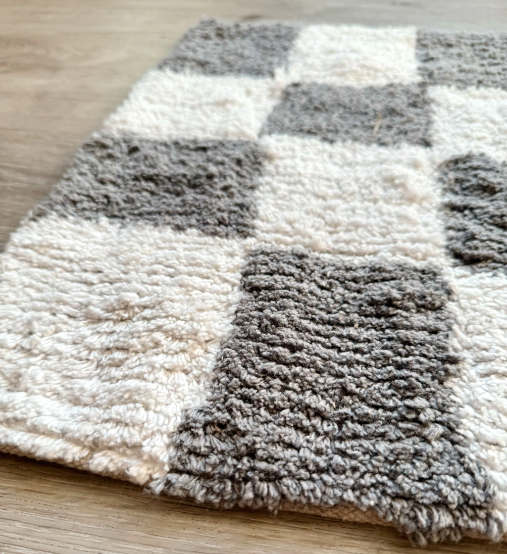Alfombra Chess Gris Agregá un toque de estilo a tus espacios con esta alfombra de algodón de origen indio, con diseño de cuadrados en blanco y gris. Sus medidas de 40x60 cm la hacen ideal para entradas, baños o dormitorios. Su tejido suave y resistente garantiza confort y durabilidad. Una opción decorativa y funcional para renovar cualquier ambiente de tu hogar.