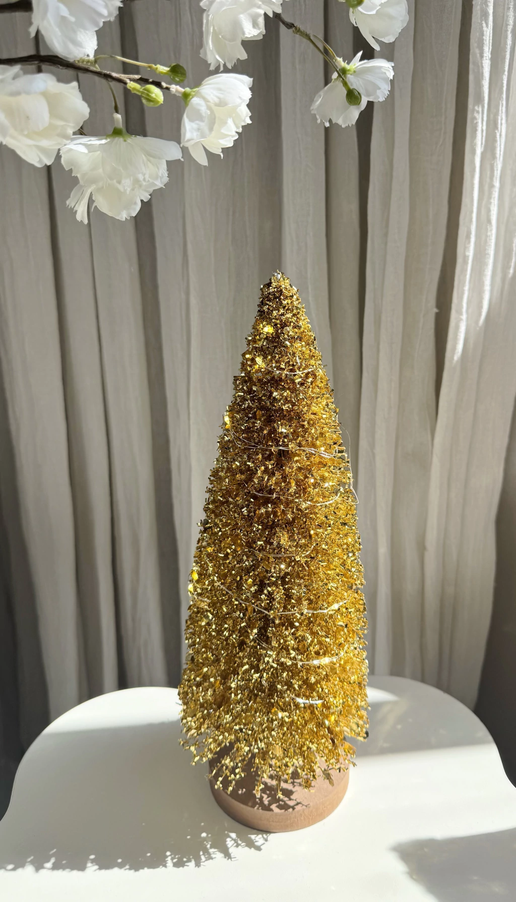 Árbol alambre tupido con luces base de metal 13x35cm dorado a batería, una pieza decorativa que ilumina y realza cualquier ambiente. Su diseño elegante en dorado y base resistente de metal lo convierten en el detalle ideal para mesas, estanterías o eventos especiales. Funciona a batería, brindando practicidad y seguridad. Añadí un toque cálido y sofisticado a tu hogar con este árbol luminoso.