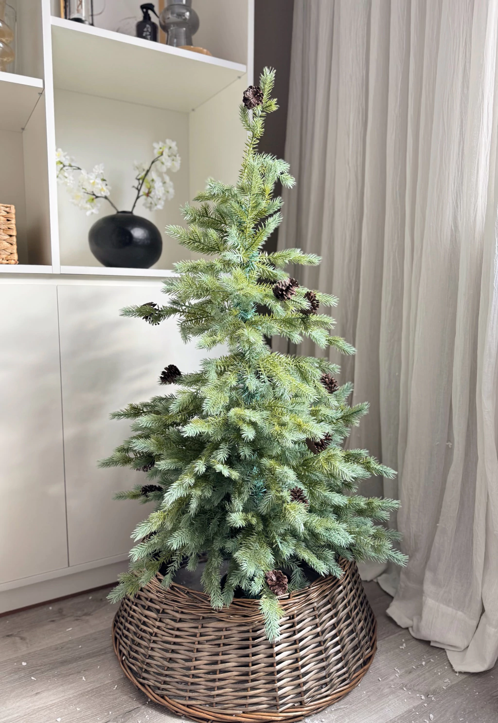 La opción perfecta para decorar y proteger tu árbol. Con diseño cónico símil mimbre, aporta calidez y estilo natural a cualquier ambiente. Fabricada en plástico resistente, mide 40-50 cm de diámetro y 19 cm de alto. Fácil de limpiar y liviana, es ideal para mantener la base del árbol prolija, integrándose a la decoración de tu hogar durante las fiestas.