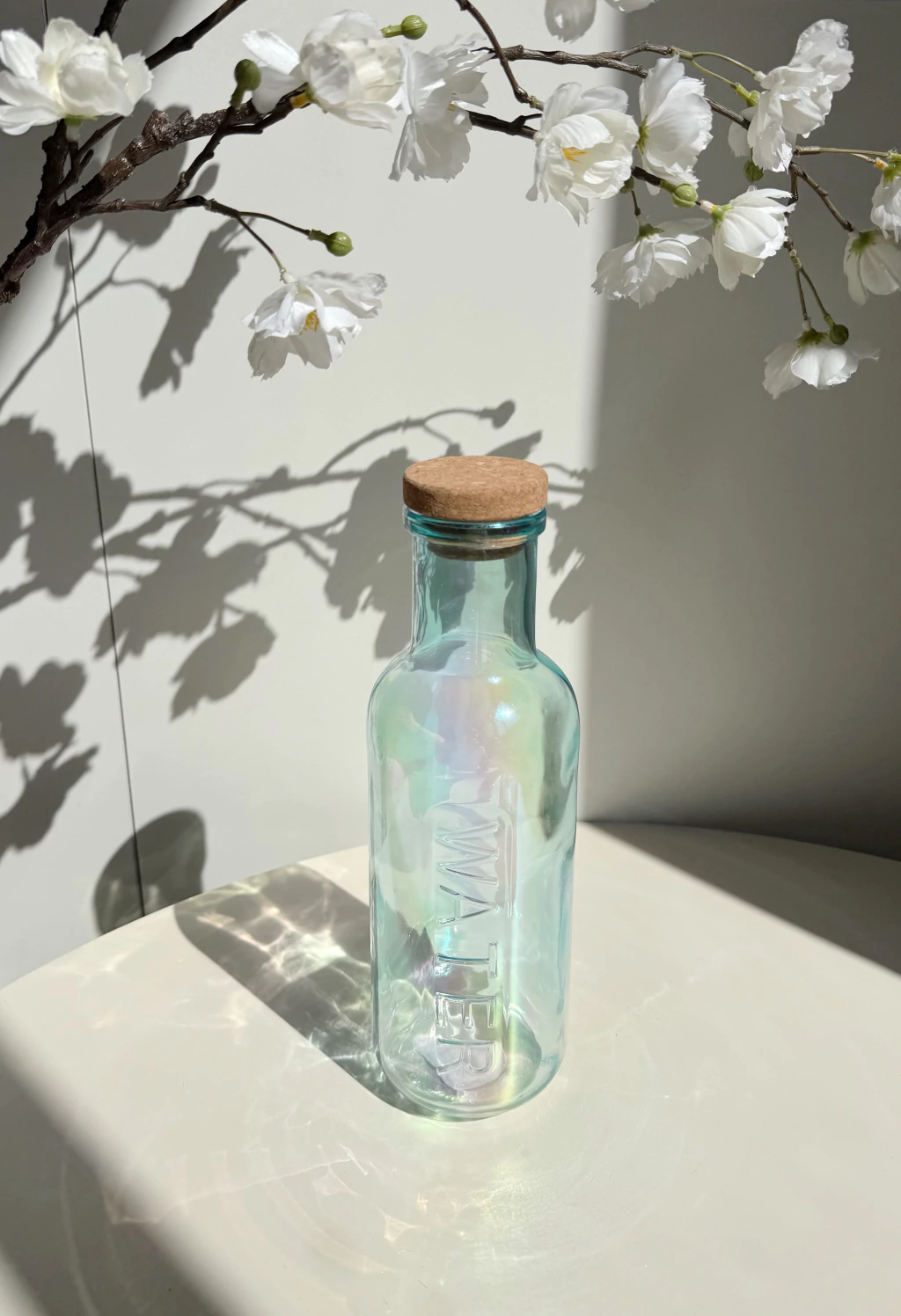 Descubrí la Botella de vidrio verde perlada "water" con tapón de corcho, perfecta para aportar elegancia y funcionalidad a tu mesa. Con capacidad de 1000ml y medidas de 8,7x8,7x27,8 cm, es ideal para agua y otras bebidas. Su acabado perlado y tapón de corcho aseguran frescura y estilo, convirtiéndola en una opción sustentable y decorativa para el hogar o la oficina.
