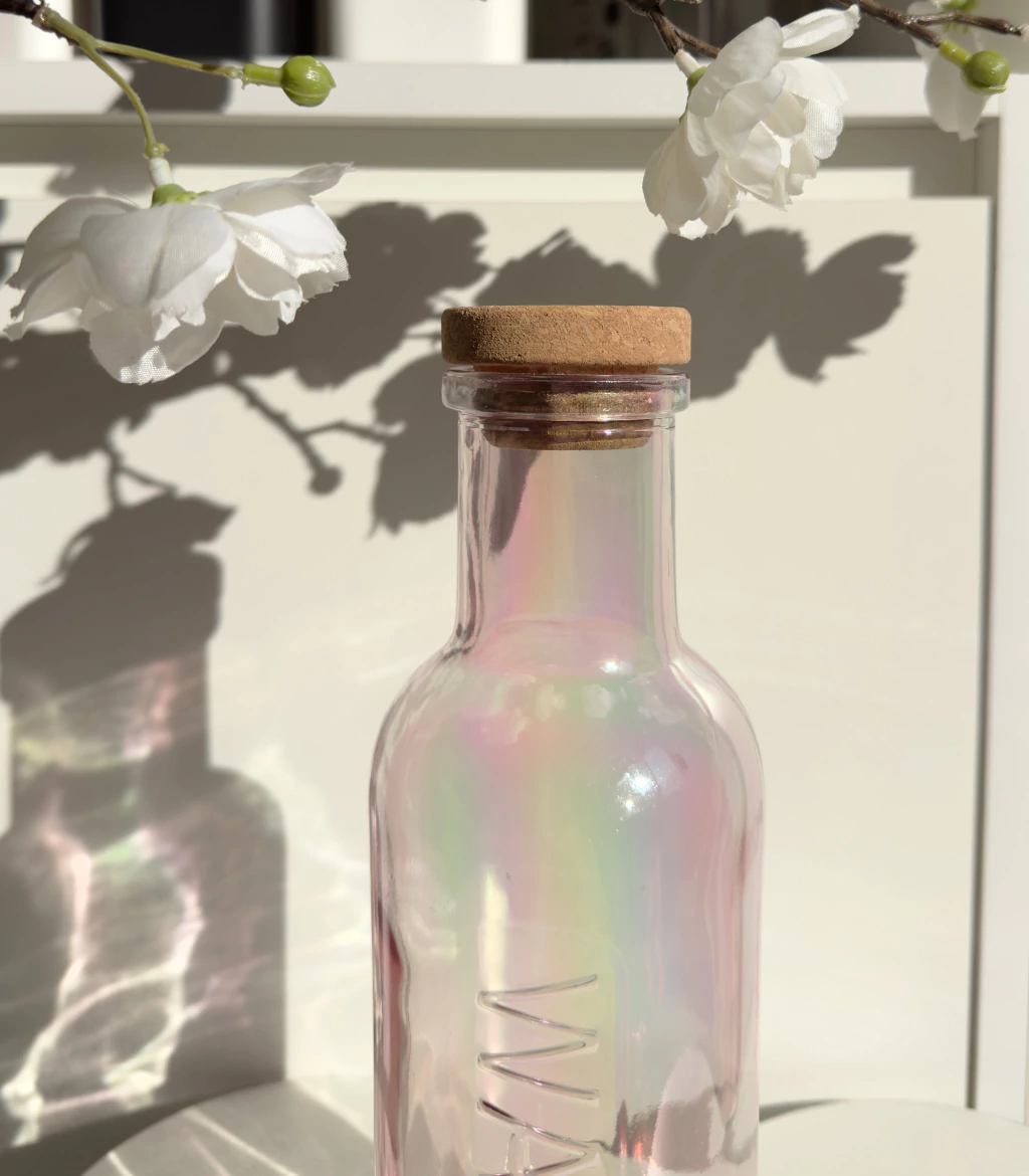 Descubrí la Botella Brejar Rosa tornasolado de 1 litro, elaborada en vidrio rosa perlado con un elegante tapón de corcho. Sus medidas de 8,7x8,7x27,8 cm la hacen ideal para conservar tus bebidas favoritas con estilo y practicidad. Perfecta para uso diario, aporta un toque moderno a tu mesa o cocina. Capacidad de 1000 ml, resistente y fácil de limpiar.