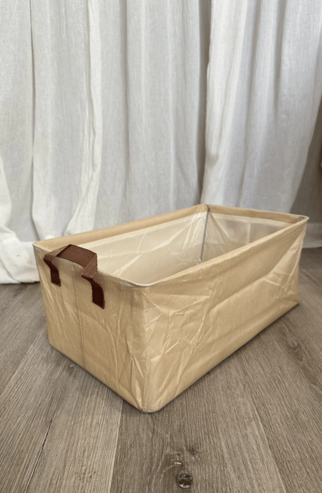 Caja organizadora blanca de tela con asa símil cuero (47x28x20cm), perfecta para optimizar el espacio en tu hogar u oficina. Su diseño elegante y práctico facilita el traslado y la organización de ropa, juguetes o accesorios. El acabado en tela blanca aporta luminosidad y el asa símil cuero un toque sofisticado. Ideal para mantener tus ambientes ordenados y modernos.