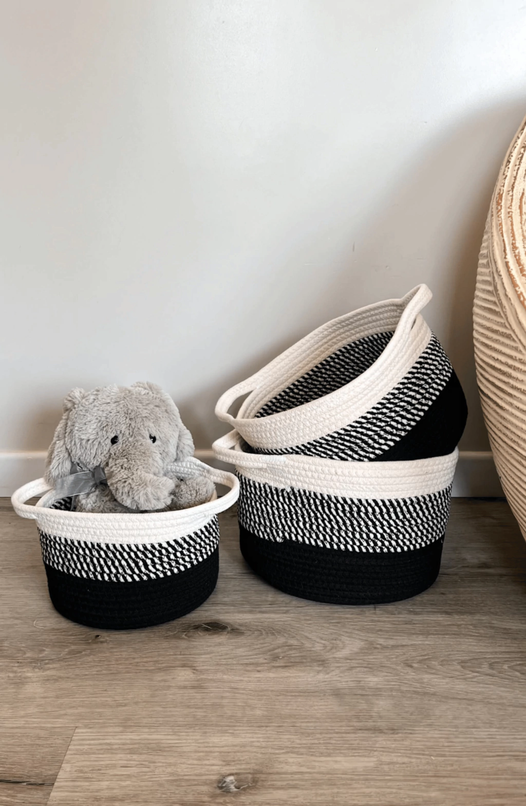 Organizá tus espacios con estilo gracias al Canasto Milwaukee, confeccionado en algodón de alta calidad con elegante combinación de blanco y negro. Disponible en tres tamaños: L (29x20cm), M (26x18cm) y S (21x15cm). Perfecto para almacenar accesorios, ropa o juguetes. Fácil de limpiar y versátil, este canasto organizador añade un toque moderno y funcional a cualquier ambiente de tu hogar.