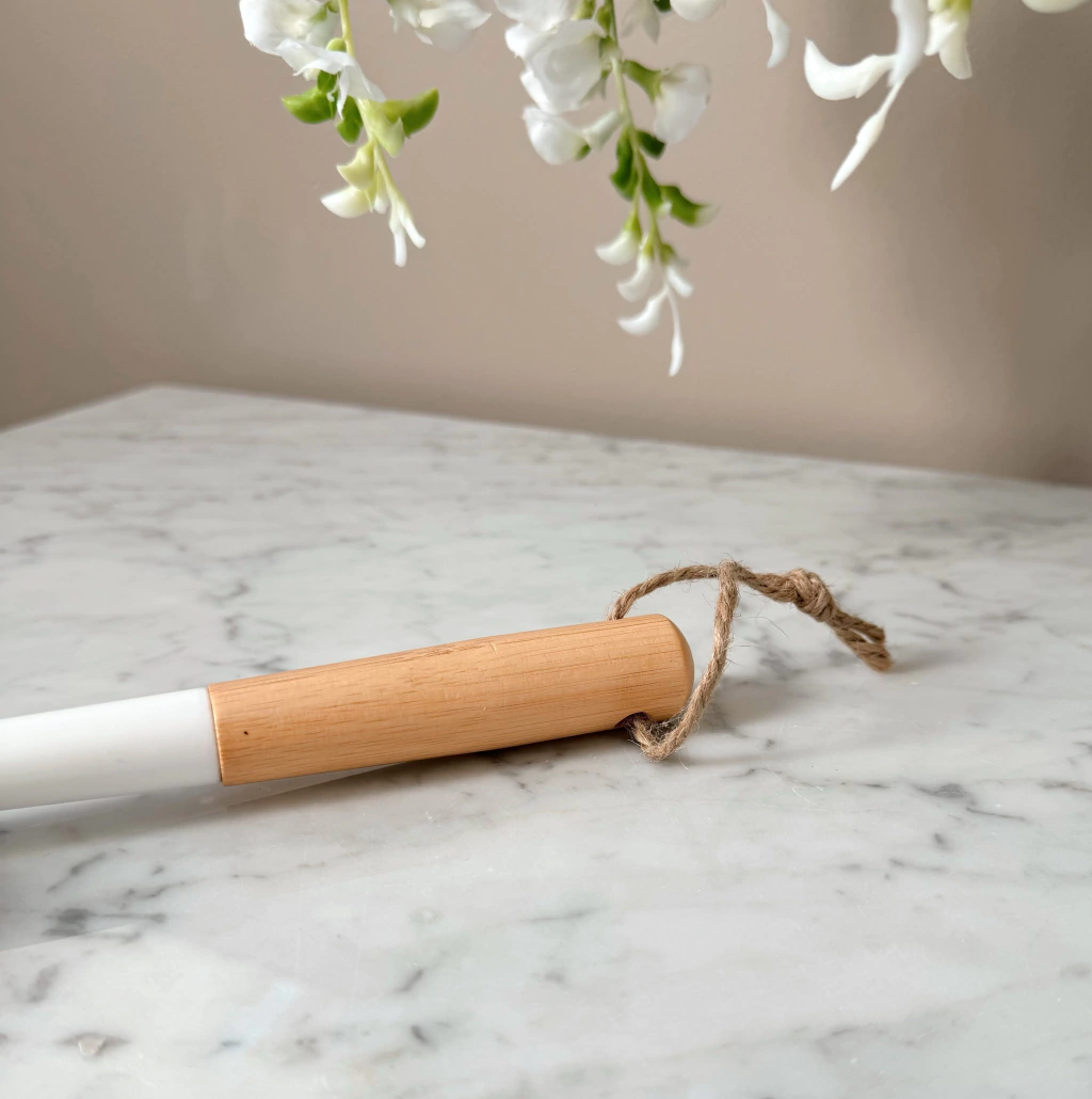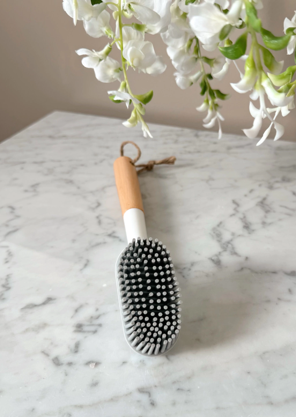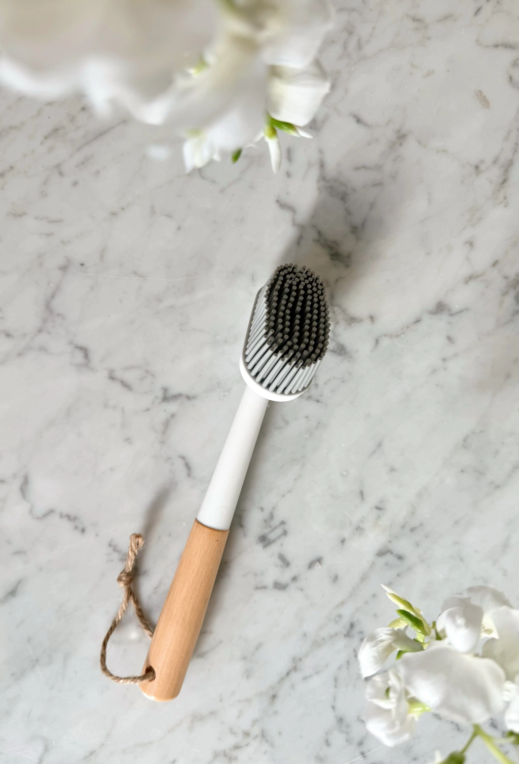 Optimizá la limpieza de tu cocina con el Cepillo Stila. Su diseño oval blanco con gris y mango de bamboo de silicona ofrece ergonomía y durabilidad. Medidas: cepillo 7 cm, ancho del mango 4 cm, largo total 25 cm. Fabricado en China, es ideal para lavar vajilla o superficies delicadas. Un accesorio práctico, resistente y fácil de limpiar para el uso diario en tu hogar.