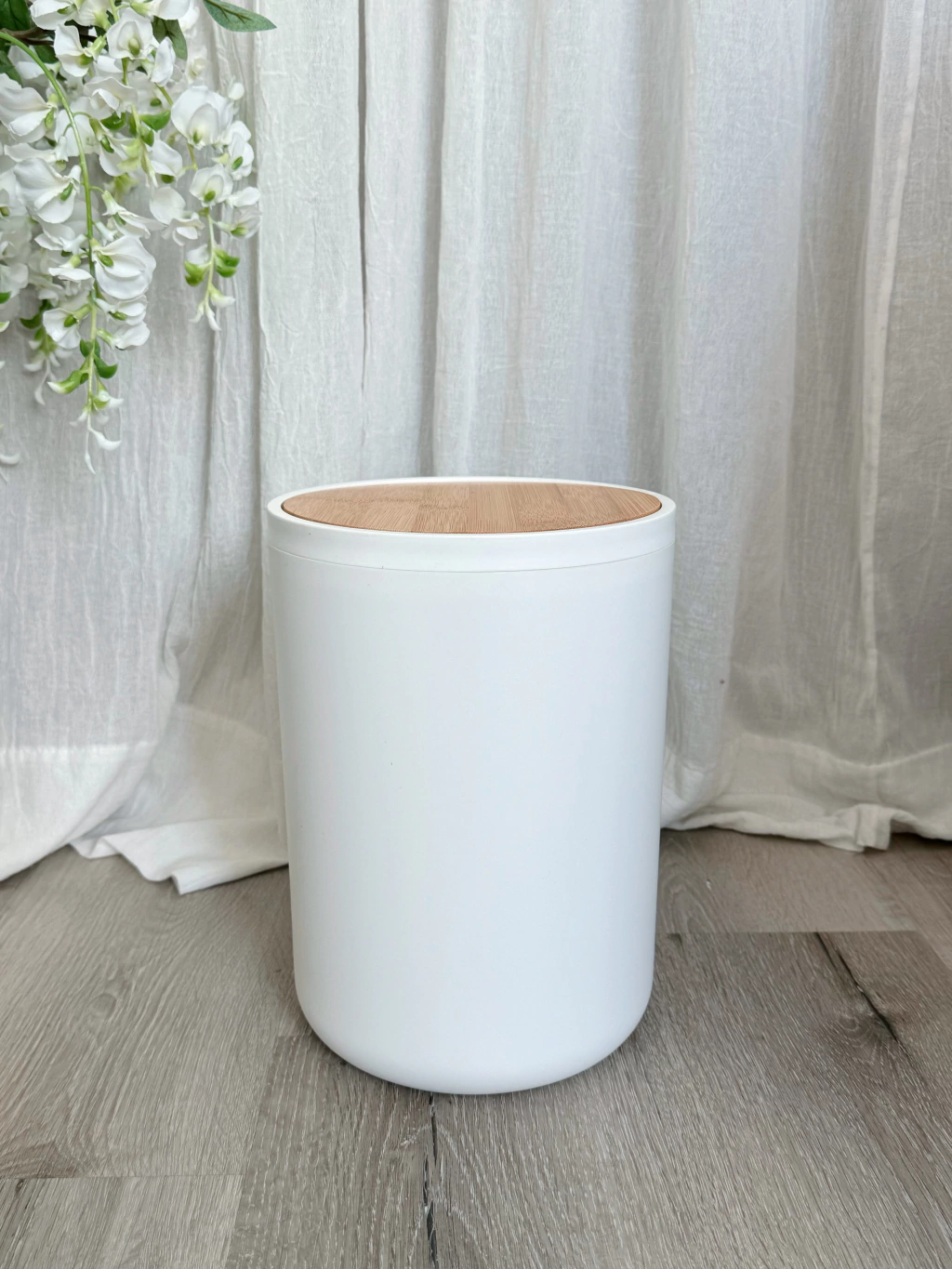 El Cesto de Basura Blanco liso de plástico con Tapa Bamboo es la opción perfecta para mantener tus espacios limpios y organizados. Con capacidad de 8 litros y medidas de 19 x 28,6 cm, combina practicidad y diseño moderno. Su tapa de bamboo aporta un toque natural y elegante, ideal para cocina, baño u oficina. Fácil de limpiar y resistente, se integra a cualquier ambiente.