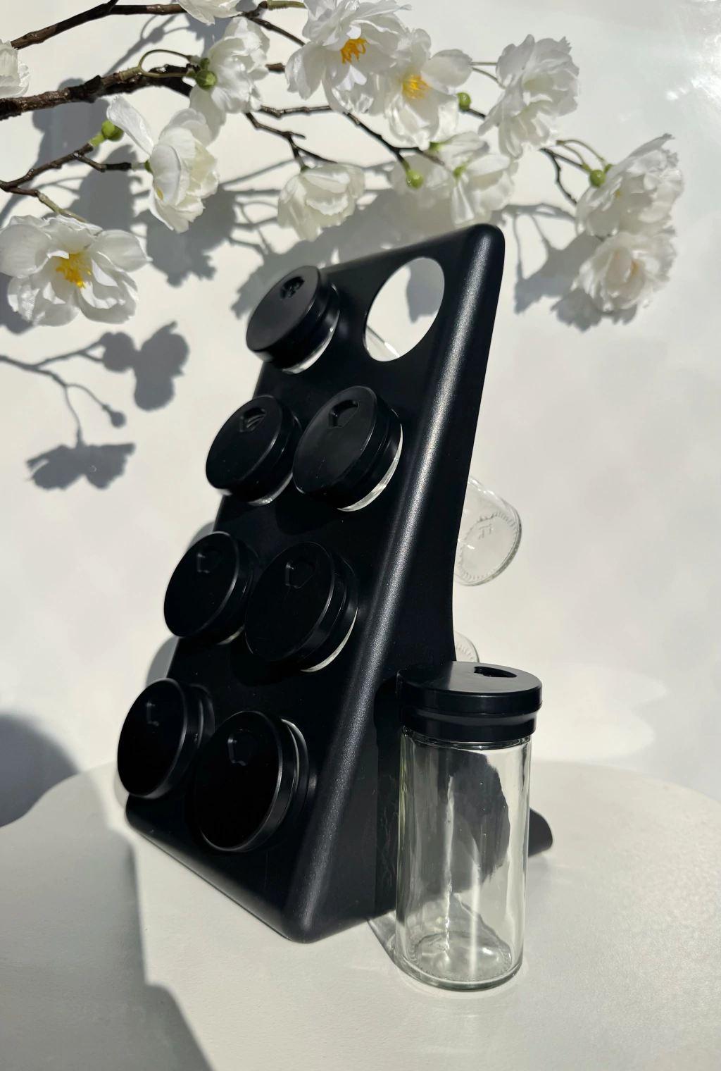 Especiero Selora Negro x8 Frascos, la solución perfecta para mantener tus especias organizadas y a mano. Incluye 8 frascos de vidrio de 100ml con tapas de metal negras, combinando funcionalidad y diseño moderno. Medidas del especiero: 13x17cm. Ideal para optimizar tu cocina y conservar tus condimentos frescos por más tiempo. Elegí practicidad y estilo para tu hogar.