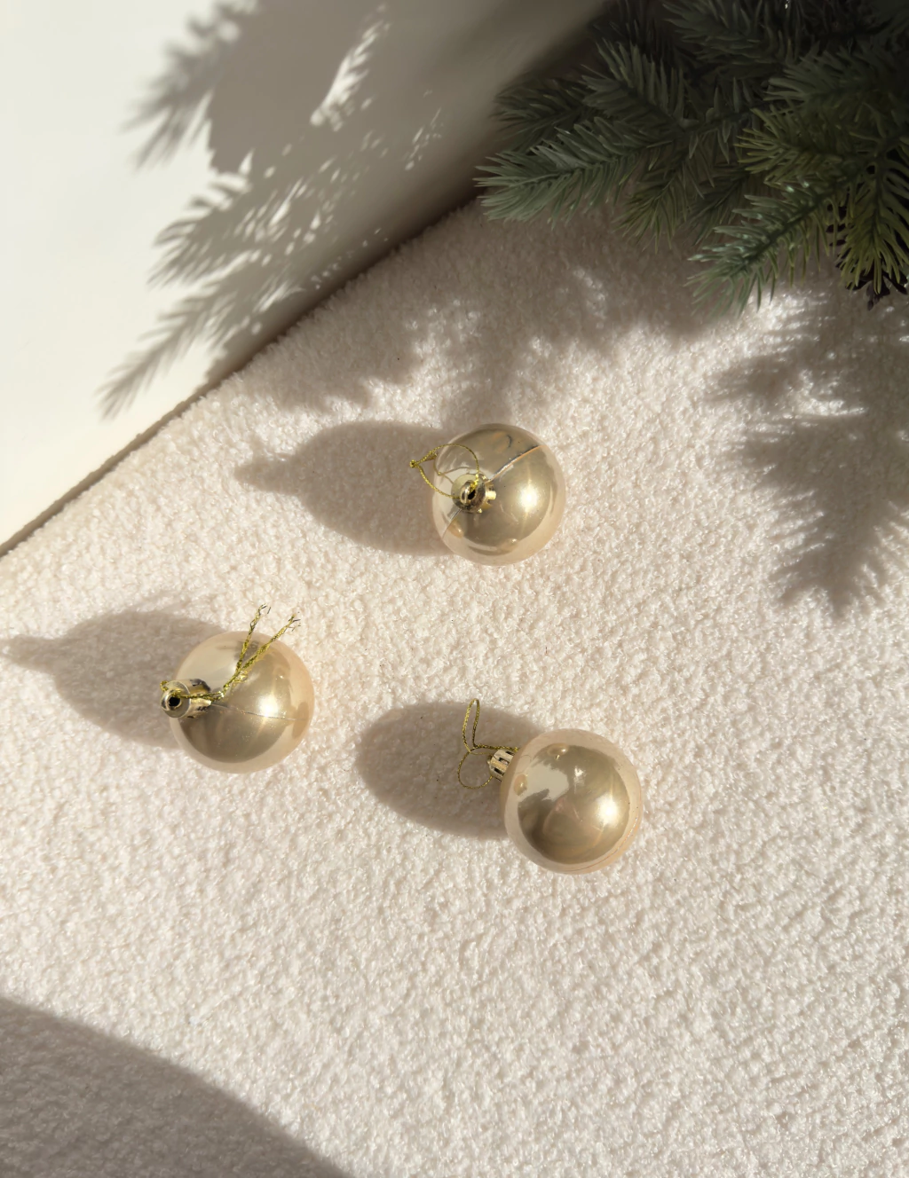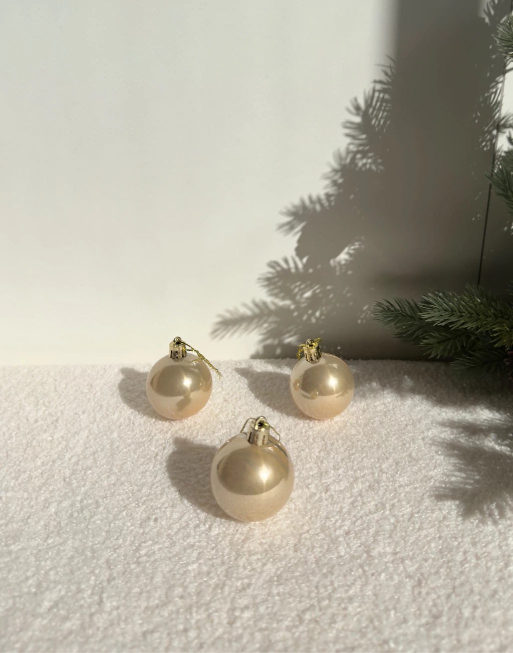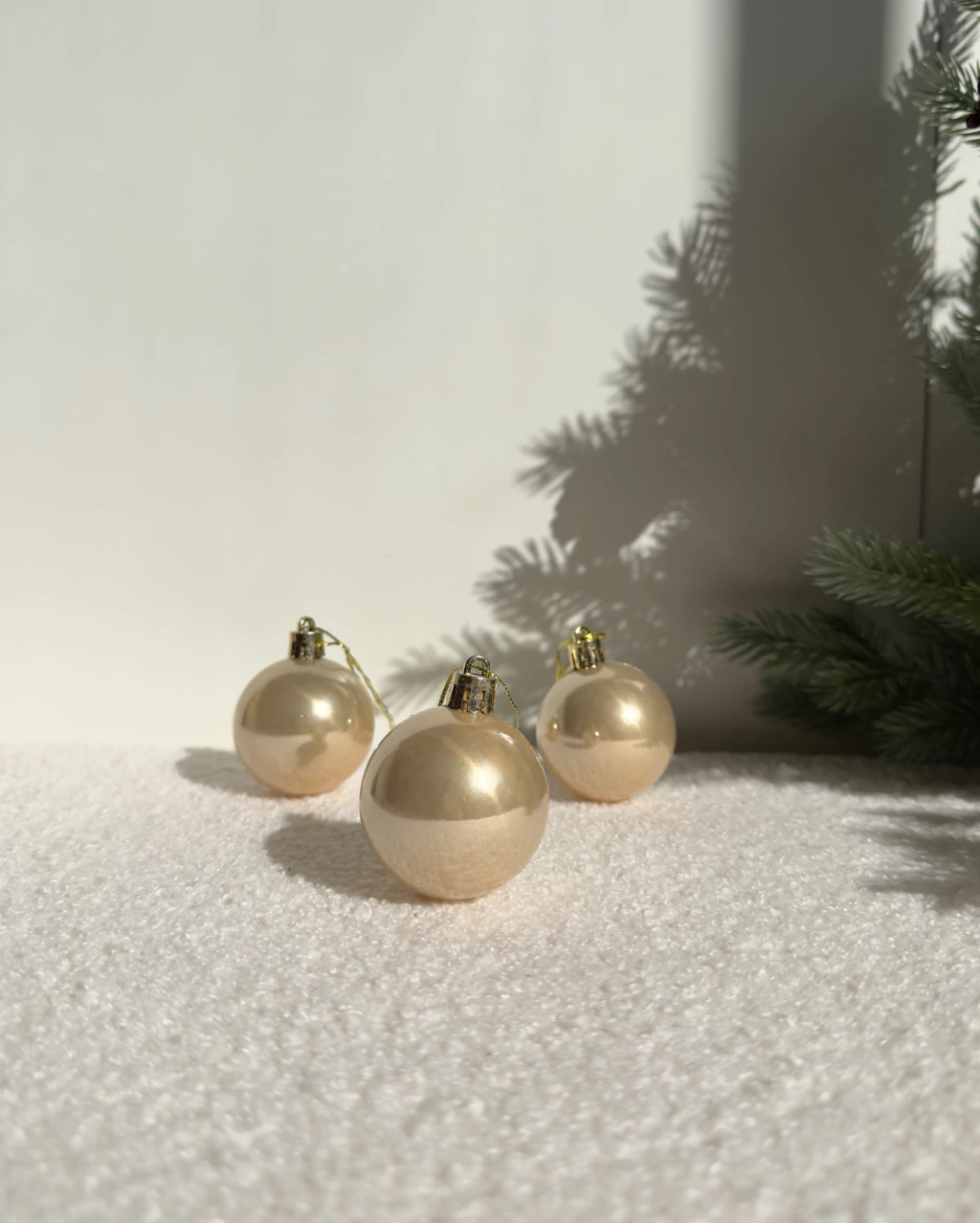 Estuche x12 bolas perladas champagne de 4 cm, el complemento ideal para tu decoración navideña o de eventos especiales. Cada estuche incluye 12 esferas en un elegante tono bordó perlado, perfectas para árboles de Navidad, centros de mesa o arreglos creativos. Aportá un toque sofisticado y brillante a cualquier ambiente con esta opción práctica y versátil. ¡Renová tu decoración con estilo!