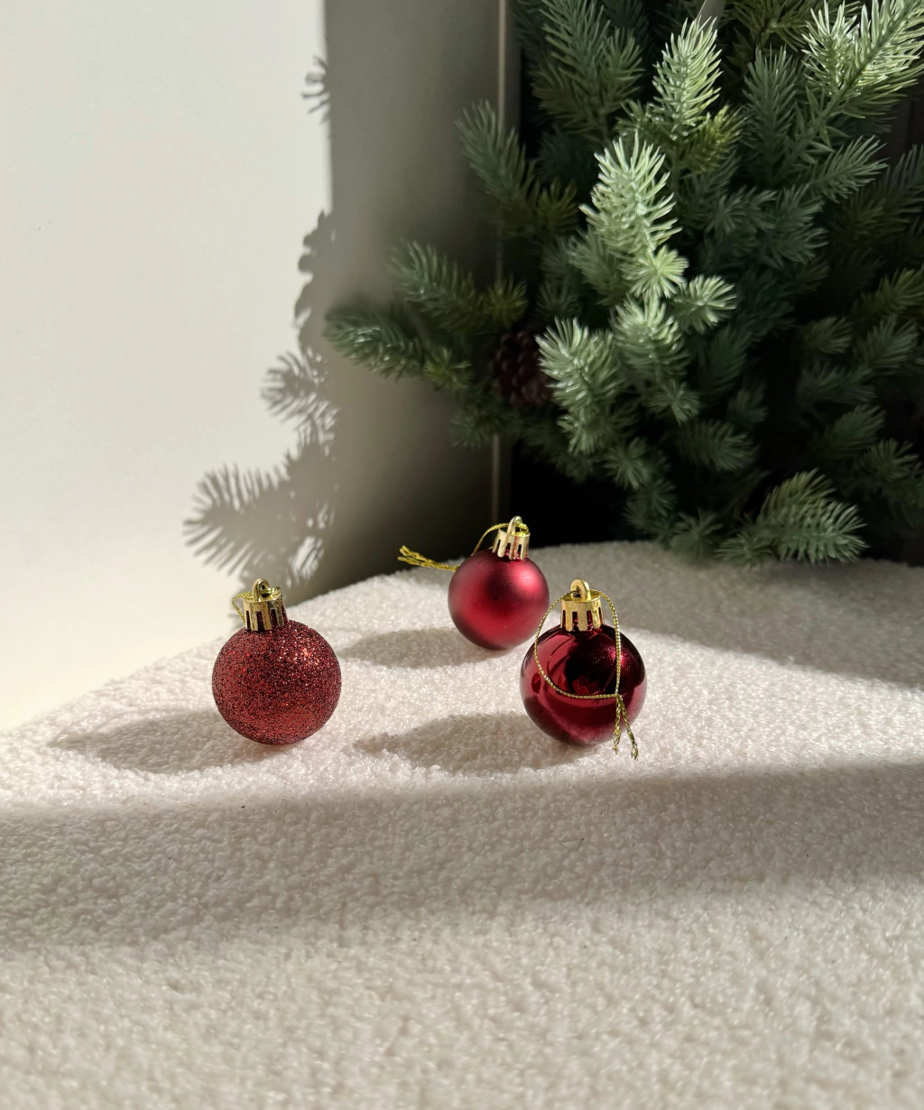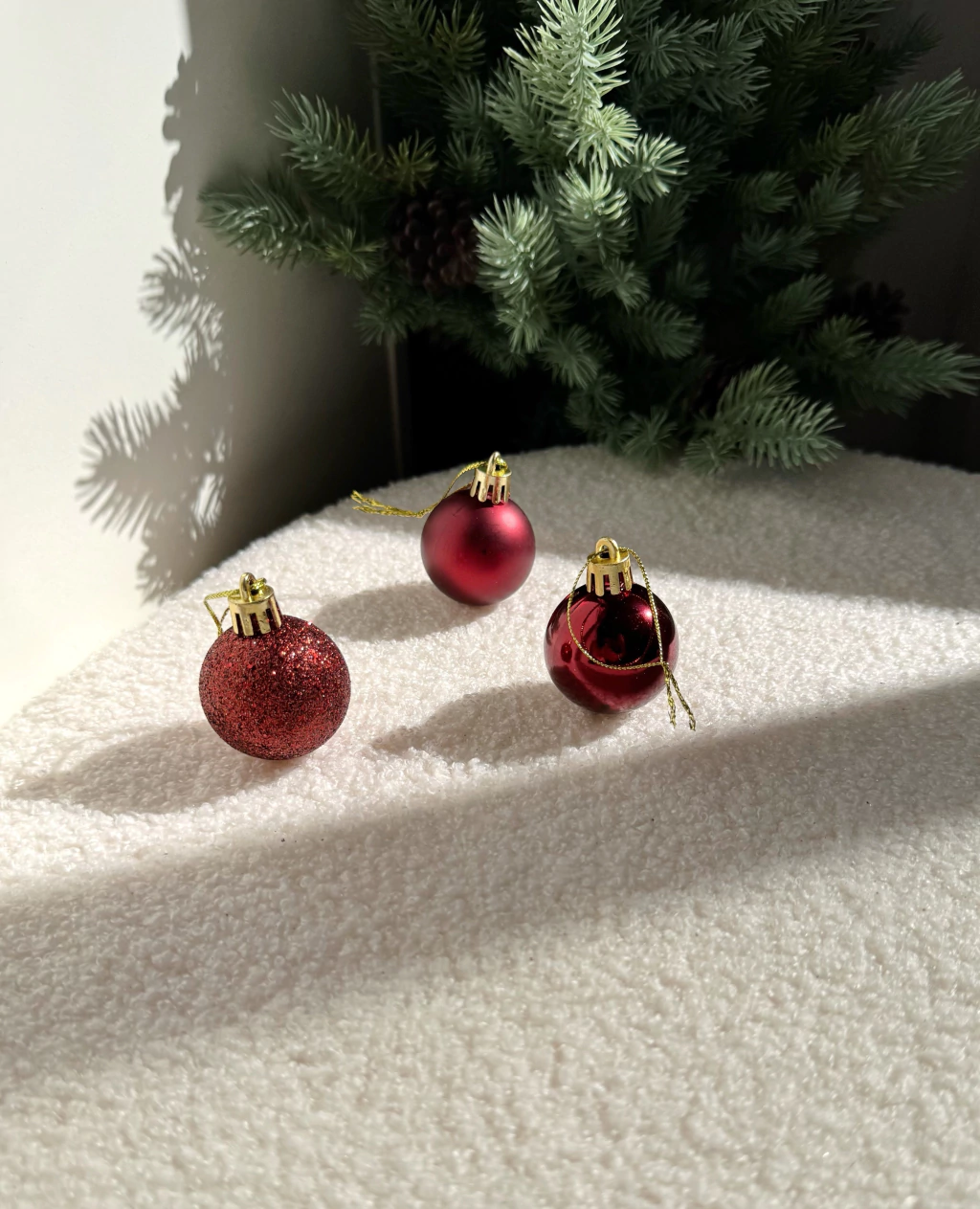 Las bolas lisas bordó surtidas 4cm, la opción perfecta para decorar tu árbol y espacios en las fiestas. Cada estuche incluye 24 bolas de plástico en tonos bordó, de 4 cm de diámetro, ideales para lograr una ambientación elegante y uniforme. Fáciles de colocar y resistentes, estas bolas lisas brindan un acabado sofisticado, realzando cualquier decoración navideña.