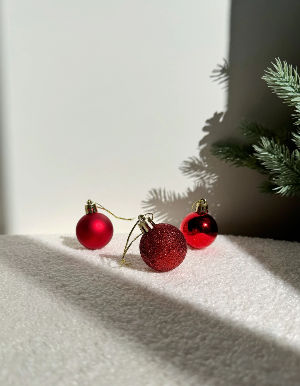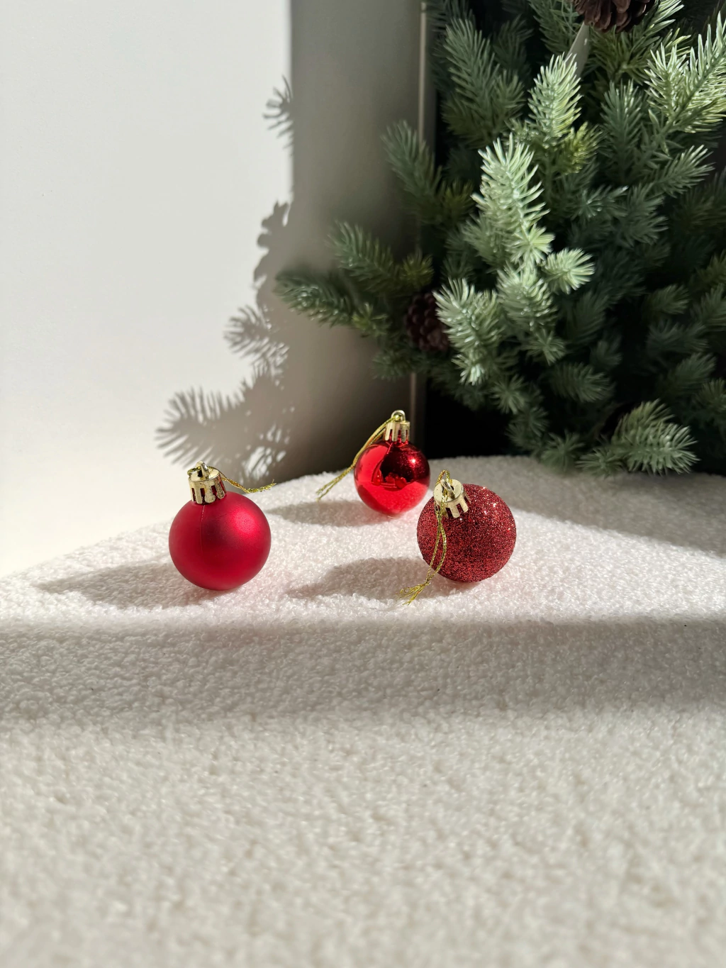 Bolas lisas rojas surtidas de 4cm. Cada set incluye 24 esferas de acabado liso y color rojo vibrante, ideales para decorar tu árbol de Navidad o cualquier espacio. Su tamaño compacto permite una distribución uniforme y elegante. Perfectas para hogares, oficinas o eventos, ofrecen calidad y durabilidad para destacar tu decoración navideña.