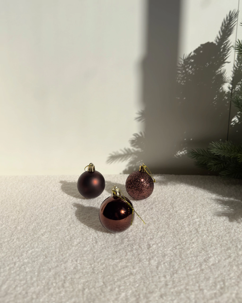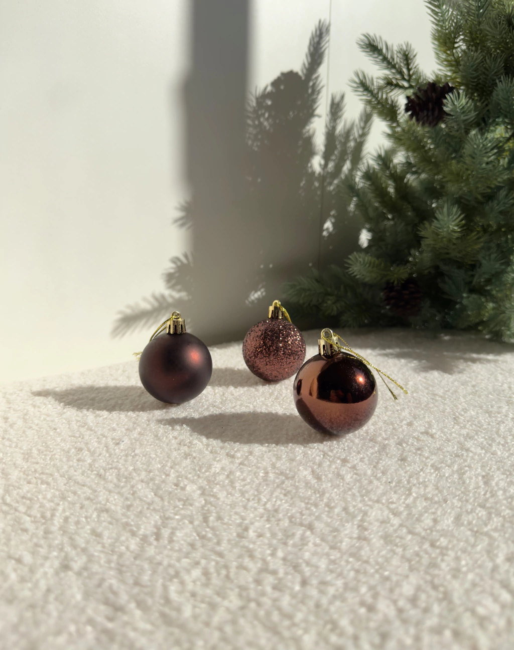 Descubrí el Estuche x24 bolas lisas marrones surtidas de 5cm, la opción ideal para decorar tu árbol o ambientes en fiestas. Cada estuche incluye 24 bolas de acabado liso en tonos marrones variados, que aportan elegancia y calidez. Su tamaño de 5 cm es perfecto para diferentes estilos de decoración. Prácticas y resistentes, son una excelente elección para renovar tu decoración navideña con un toque sofisticado.