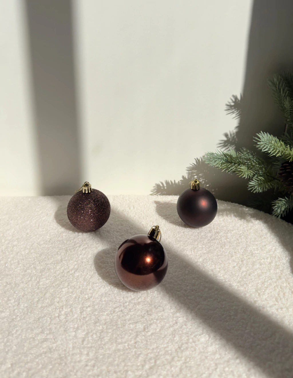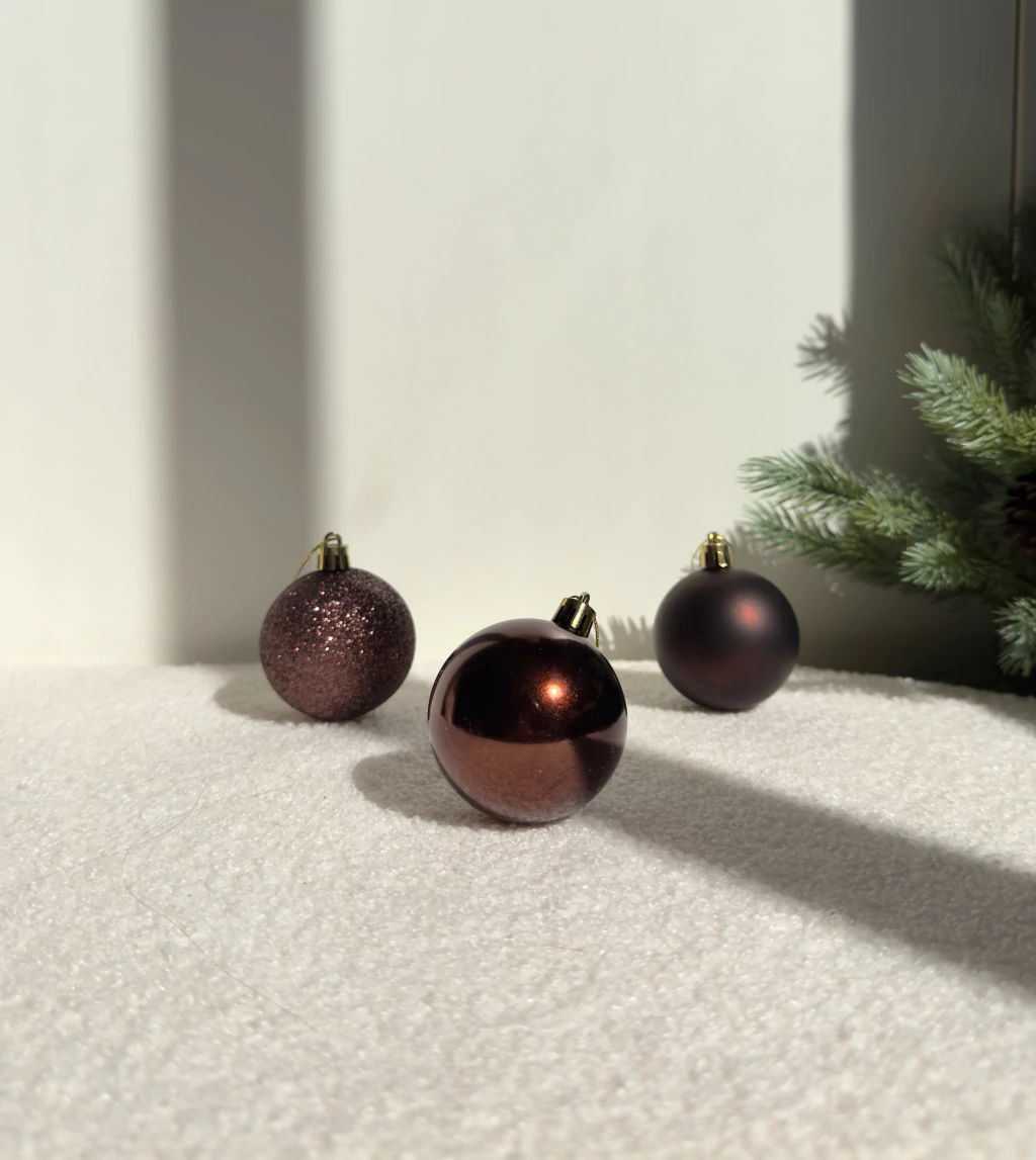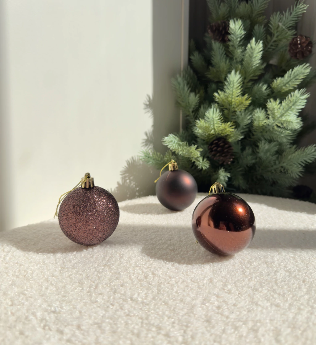 Dale un toque cálido y sofisticado a tu árbol o decoración navideña con este estuche de 24 bolas lisas marrones surtidas de 6 cm. Fabricadas con materiales resistentes, son ideales para uso repetido. Su tamaño y tonalidad aportan elegancia y versatilidad, combinando fácilmente con otros adornos. Perfectas para crear ambientes armoniosos en el hogar u oficina durante las fiestas.