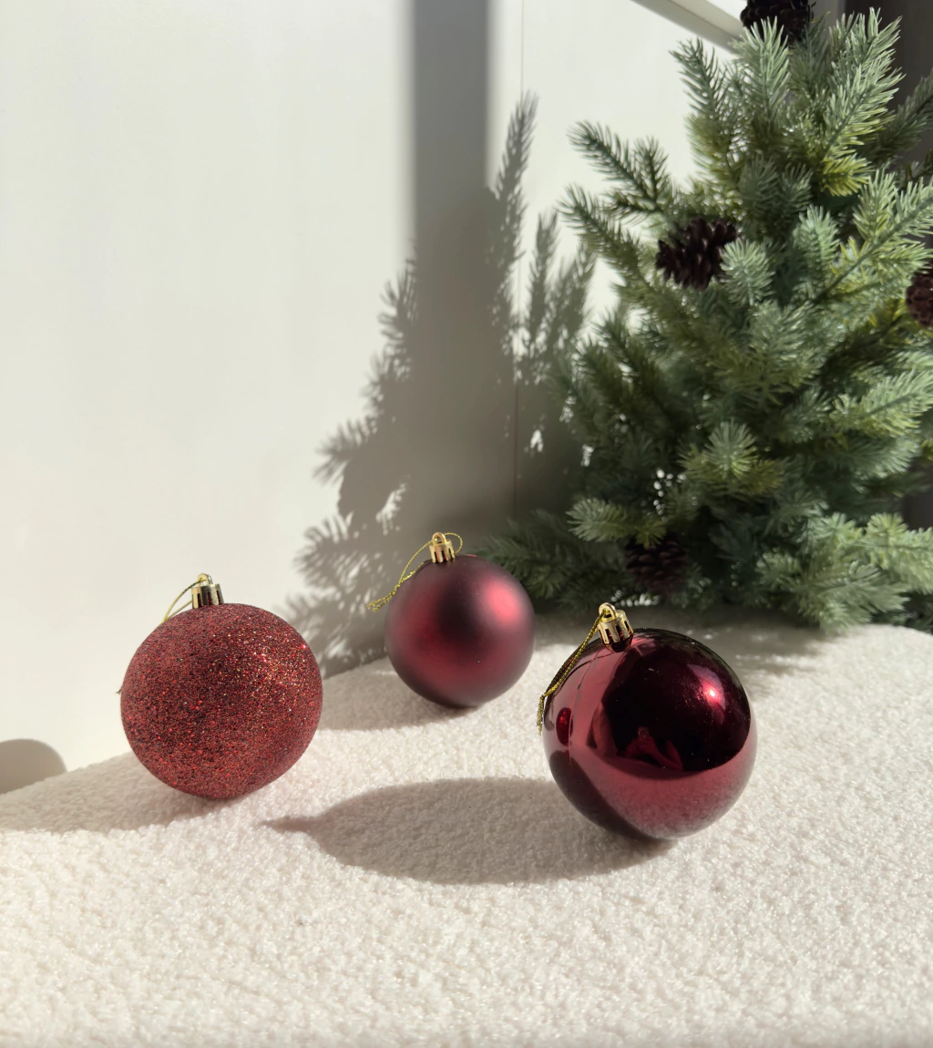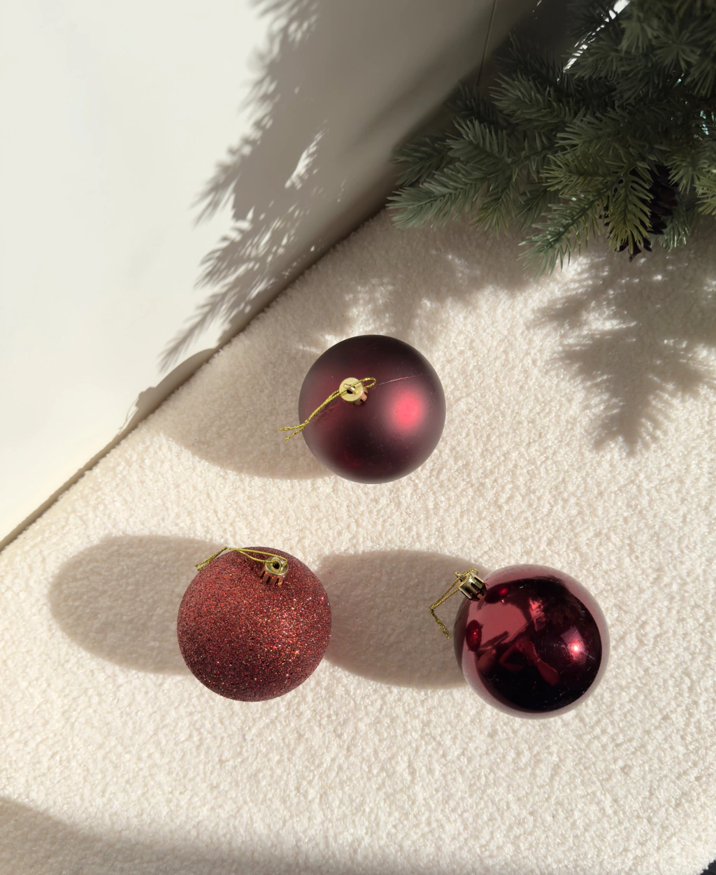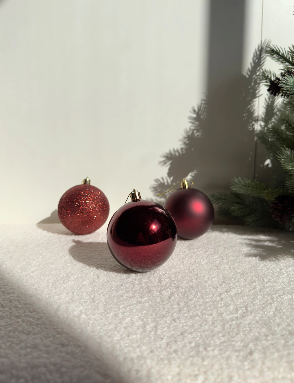Descubrí el Estuche x24 bolas lisas bordó surtidas 8cm, la opción ideal para realzar la decoración de tu árbol o ambientes festivos. Las bolas poseen un acabado elegante y uniforme, en tonos bordó, aportando un toque sofisticado y cálido. Cada estuche incluye 24 unidades de 8 cm de diámetro, perfectas para lograr una ambientación armoniosa y destacar en celebraciones especiales.