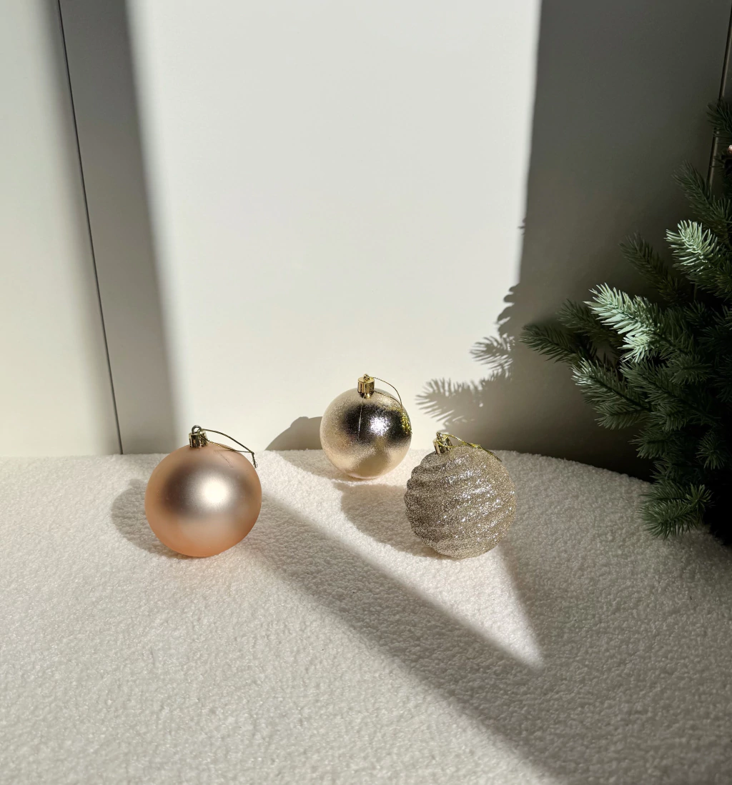 Las bolas champagne diseños surtidos 5cm, la opción perfecta para decorar tu árbol o ambientar espacios en fiestas y celebraciones. Cada estuche incluye 24 bolas de 5 cm de diámetro, con diseños variados en color champagne que aportan elegancia y brillo. Fáciles de colocar y resistentes, son ideales para dar un toque sofisticado y moderno a tus ambientes.
