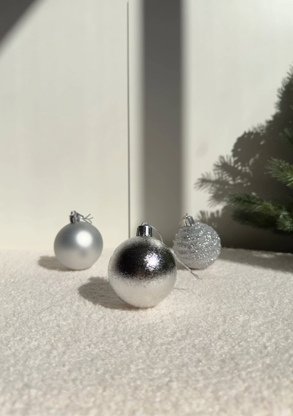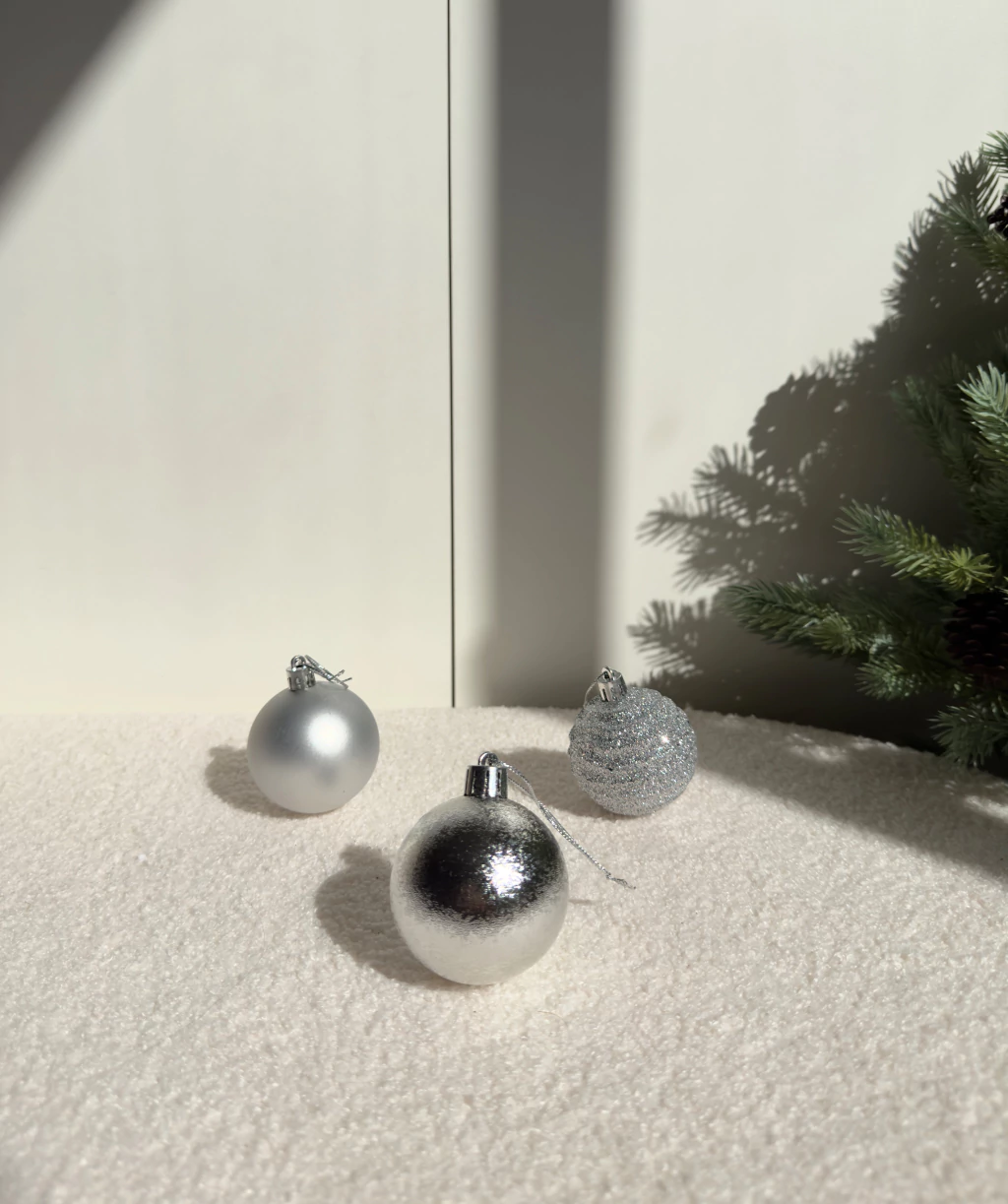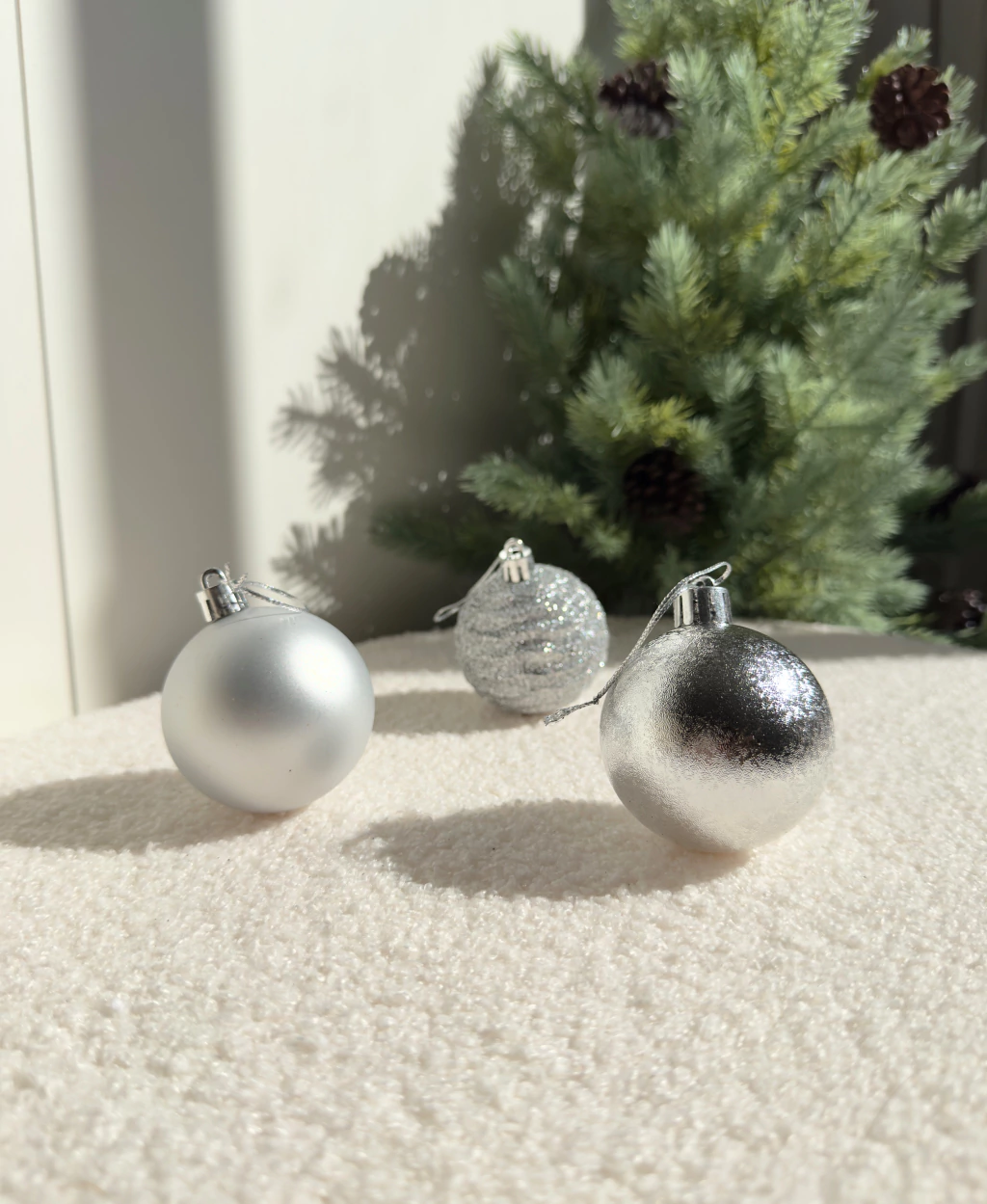 Agregá brillo y elegancia a tu decoración navideña con el Estuche x24 bolas plateadas de 6 cm. Cada set incluye diseños variados para lograr un efecto sofisticado y moderno en tu árbol o ambientes. Fabricadas en materiales de calidad, son resistentes y livianas. Ideales para hogares, locales o eventos, este estuche aporta un toque festivo y armonioso a cualquier espacio.