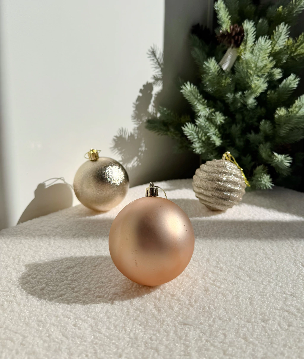 Las bolas champagne diseños surtidos de 8 cm, ideal para decorar tu árbol de Navidad o ambientar cualquier espacio festivo. Cada estuche incluye 24 bolas con terminaciones elegantes y colores champagne, aportando un toque sofisticado y cálido. Su tamaño de 8 cm es perfecto para lucir en ramas y centros de mesa. ¡Realzá tu decoración y creá ambientes únicos estas fiestas!