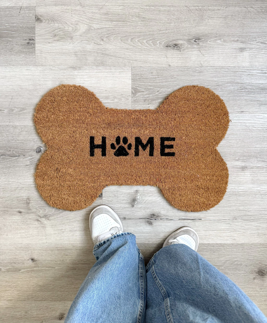 Descubrí el Felpudo Molli 40x60cm, una alfombra para entrada de casa fabricada en coco y goma, con original forma de hueso e impresa con diseño de “home” y huella negra. Sus materiales resistentes aseguran durabilidad y fácil limpieza. Medidas: 40x60 cm. Origen: India. Ideal para mantener tu hogar limpio y sumar un detalle decorativo único en la puerta de entrada.