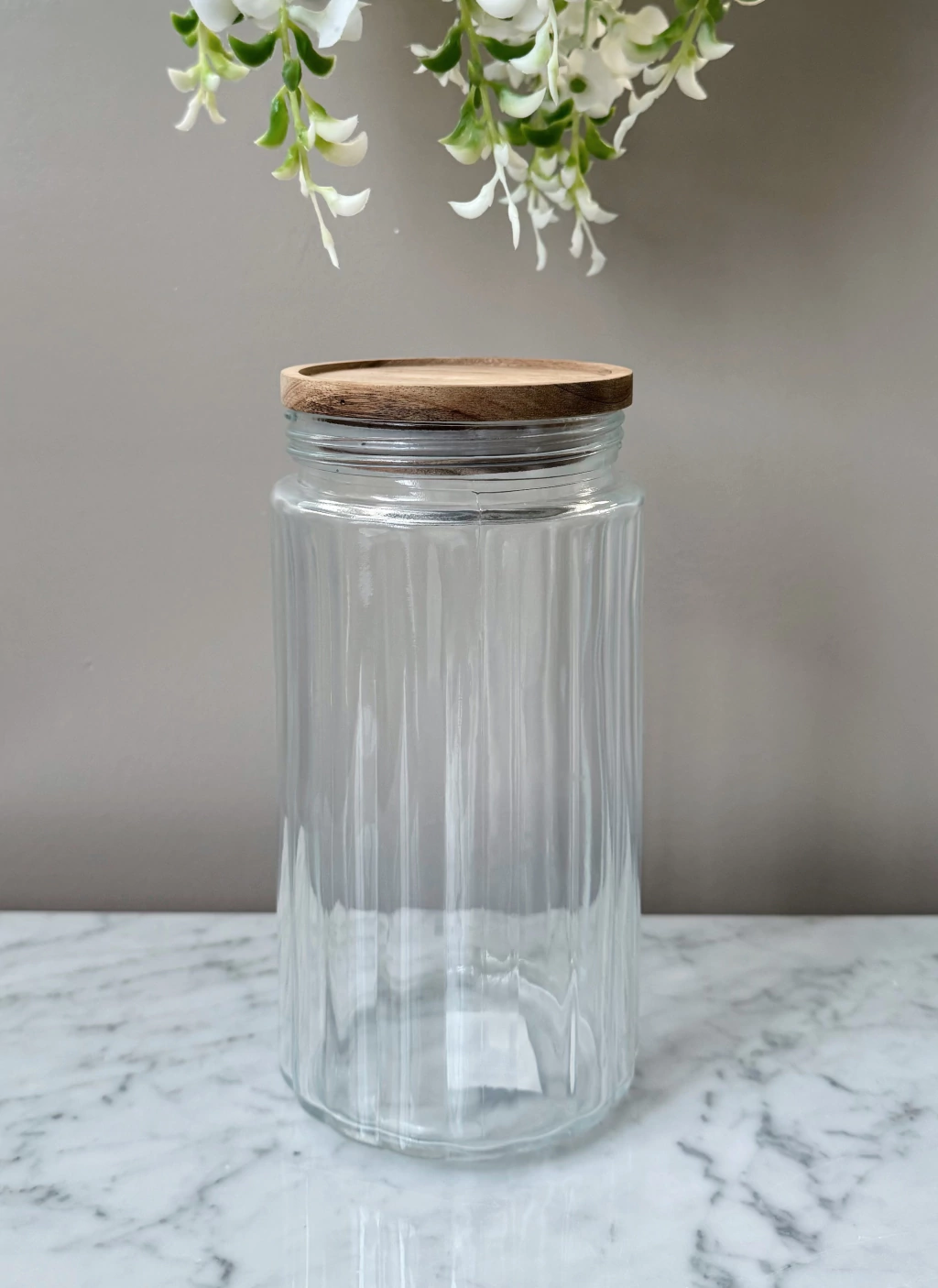 Organizá tu cocina con el frasco redondo de vidrio acanalado y tapa de madera de acacia. Sus medidas de 23,2 x 10,5 cm de diámetro y capacidad de 1500 ml lo hacen ideal para almacenar alimentos secos, manteniéndolos frescos y ordenados. Fabricado en China, su diseño combina elegancia y funcionalidad para aportar estilo a cualquier ambiente.