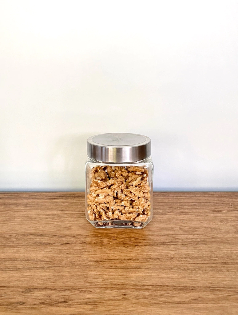 Fabricado en vidrio de alta calidad y tapa de metal, ofrece una solución práctica y elegante para almacenar alimentos secos, especias o infusiones. Disponible en cuatro medidas: 800ml (10x10x11 cm), 1100ml (10x10x15 cm), 1400ml (10x10x19 cm) y 1700ml (10x10x23 cm). Su diseño cuadrado maximiza el espacio y facilita la organización.