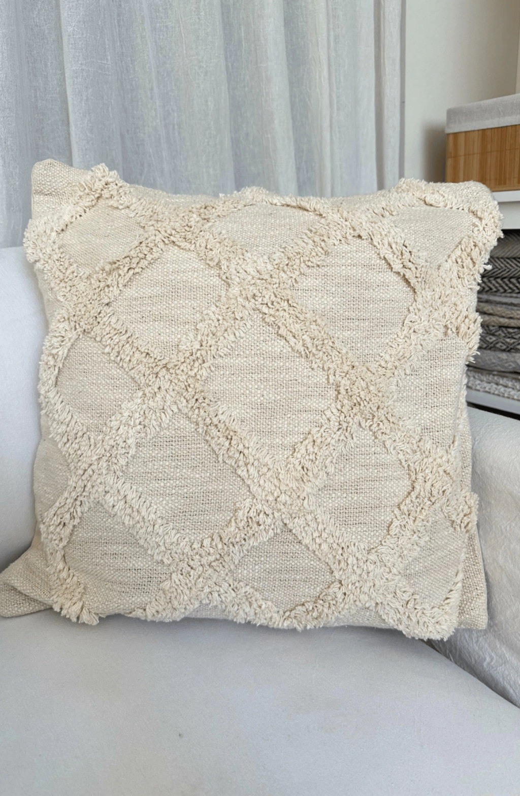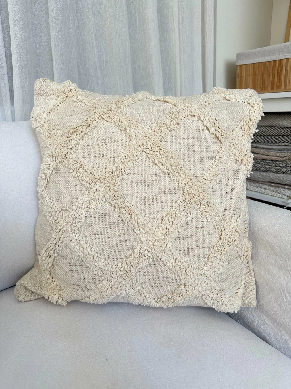 La Funda Hassan 45x45cm está confeccionada en 100% algodón natural y presenta un elegante diseño de rombos de pelo corto. Sus medidas de 45 x 45 cm la hacen ideal para renovar cualquier ambiente con un toque sofisticado y acogedor. Aporta estilo y comodidad a tus almohadones, combinando calidad textil y tendencia en decoración, perfecta para realzar livings, dormitorios o espacios de relax.