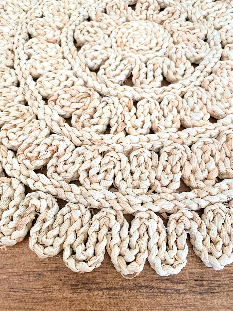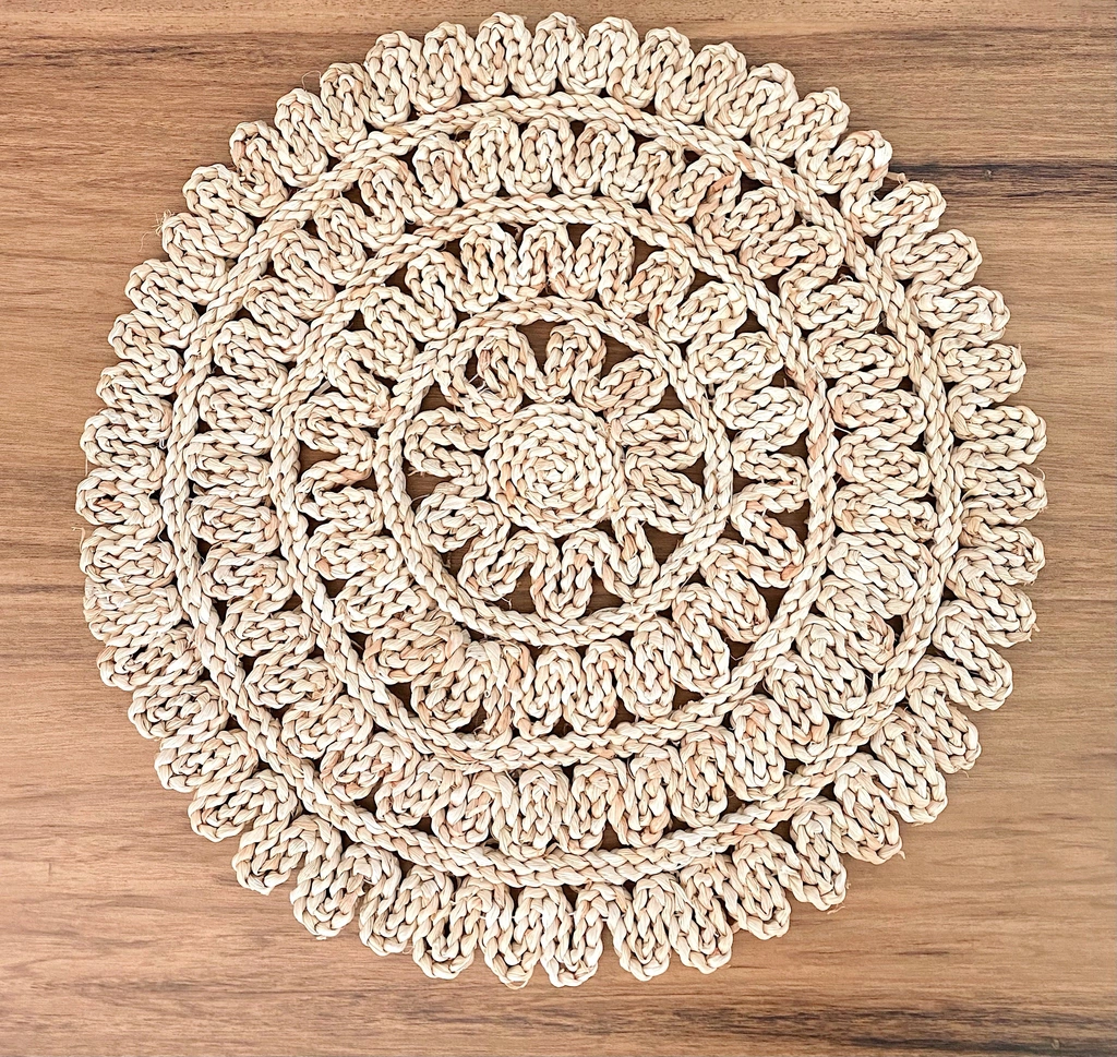 Dale un toque natural y sofisticado a tu mesa con este individual redondo de hoja de maíz calado. Su diámetro de 35 cm lo hace ideal para platos principales, realzando la presentación en cualquier ocasión. Es ligero, resistente y fácil de limpiar, perfecto para uso diario o eventos especiales. Elegí este individual para sumar calidez y diseño sustentable a tu hogar.