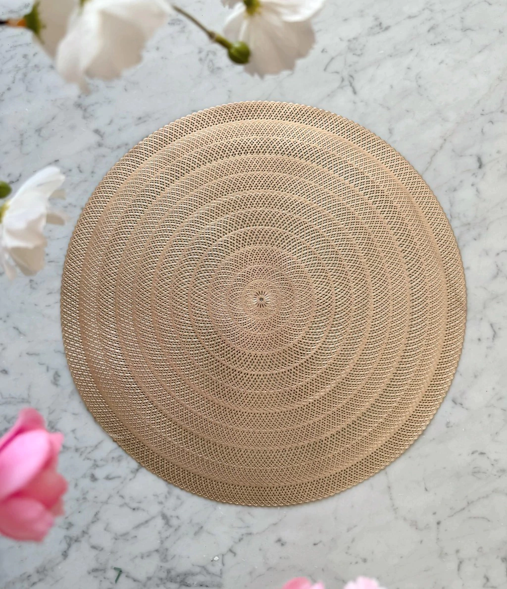 Descubrí el Individual Lynelle Dorado, elaborado en PVC calado y tramado, con elegante terminación en color dorado. Su formato redondo realza cualquier mesa, aportando estilo y sofisticación a tus comidas diarias o eventos especiales. Fácil de limpiar y resistente, es ideal para proteger tus superficies y agregar un toque moderno a tu hogar. Perfecto para quienes buscan funcionalidad y diseño en la decoración de su mesa.