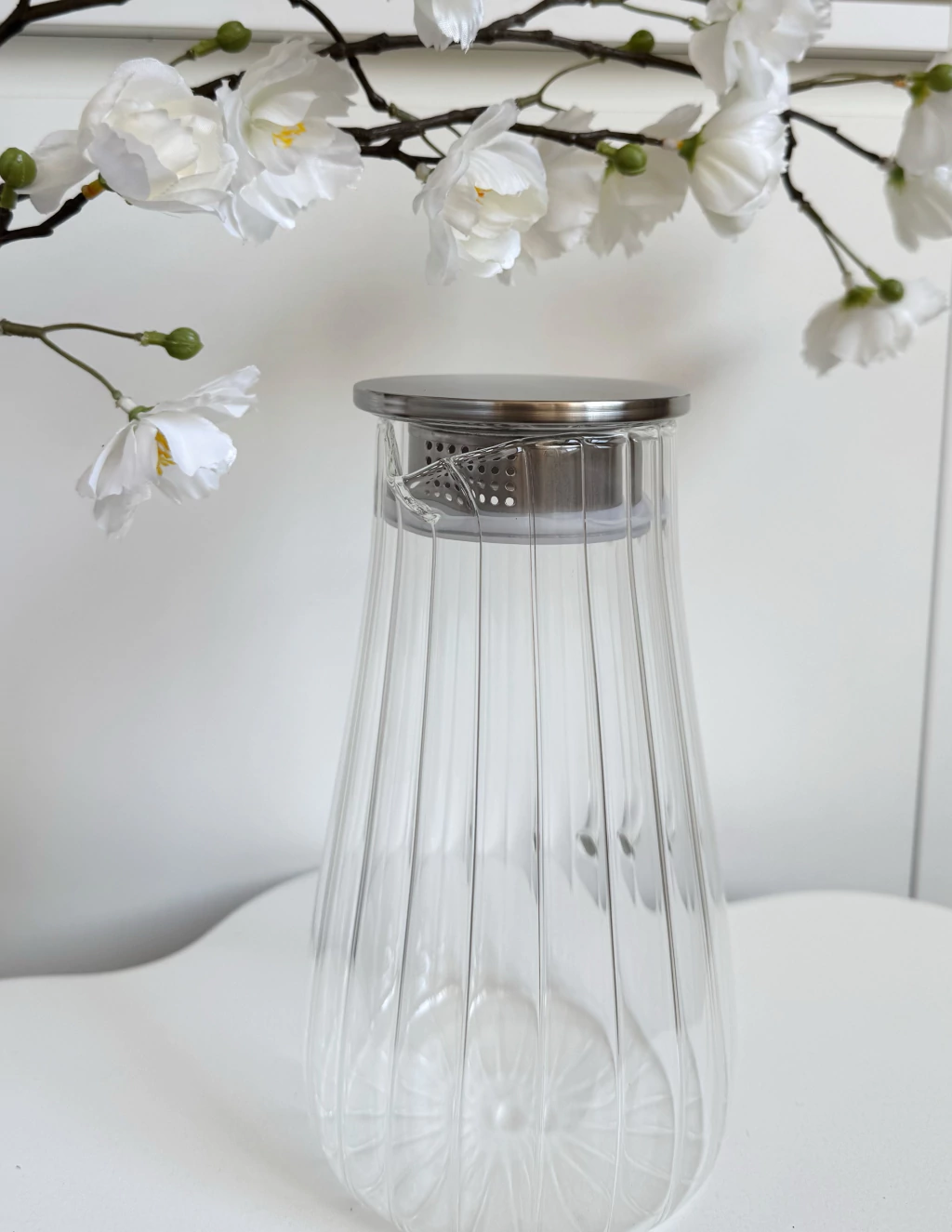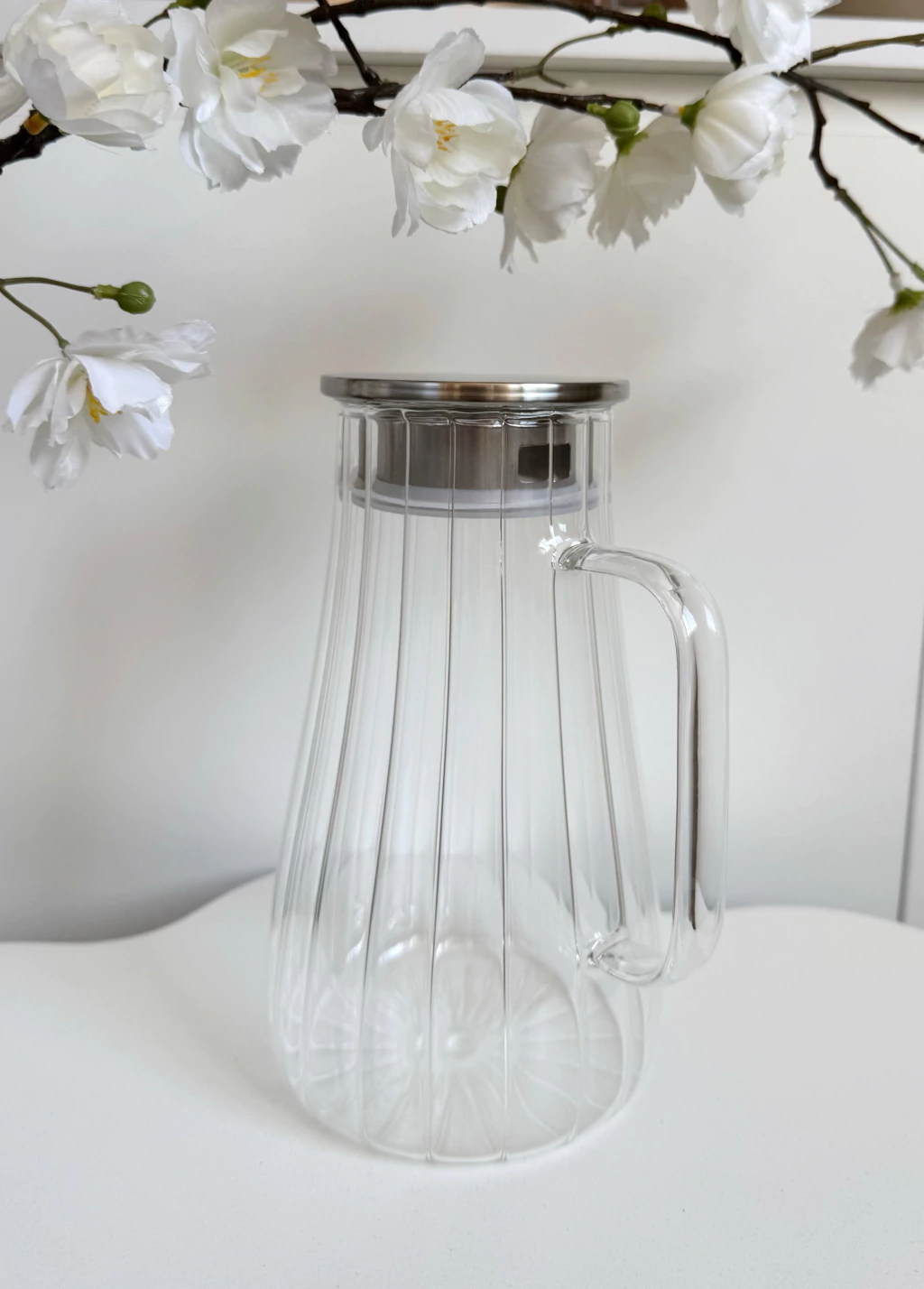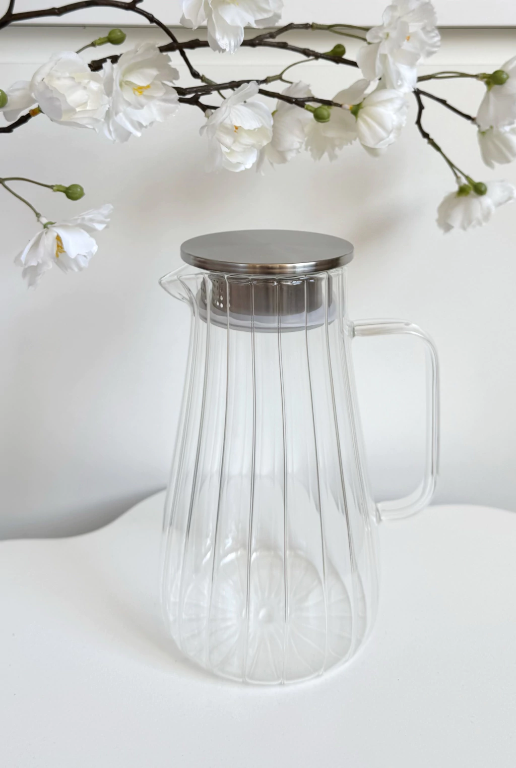 Jarra Aniel Transparente 1.8lts, fabricada en vidrio rayado grueso de alta calidad. Con capacidad de 1800ml y medidas de 22 cm de alto x 9 cm de ancho x 12 cm de profundidad, es perfecta para servir agua, jugos o bebidas frías en reuniones familiares o eventos. Su diseño elegante y resistente suma un toque sofisticado y práctico a cualquier mesa.