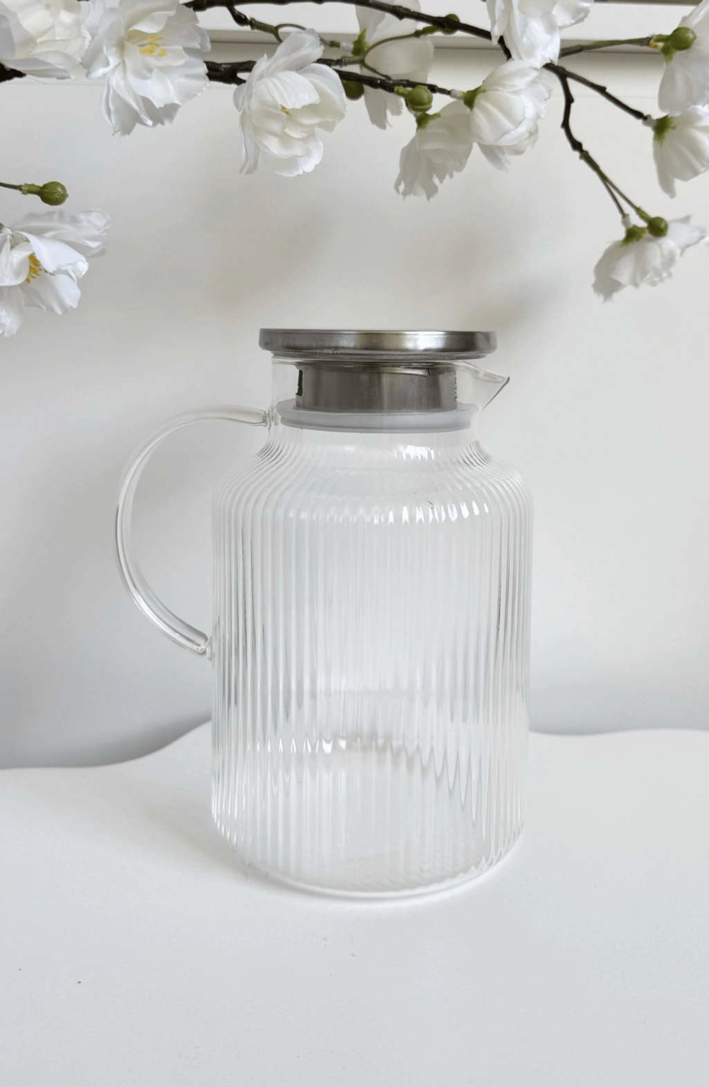 Descubrí la Jarra Deemi Transparente Rayada de 1.8lts, ideal para servir agua, jugos o tus bebidas favoritas. Fabricada en vidrio resistente y con tapa de metal, garantiza frescura y practicidad. Su diseño rayado y transparente aporta elegancia a cualquier mesa.