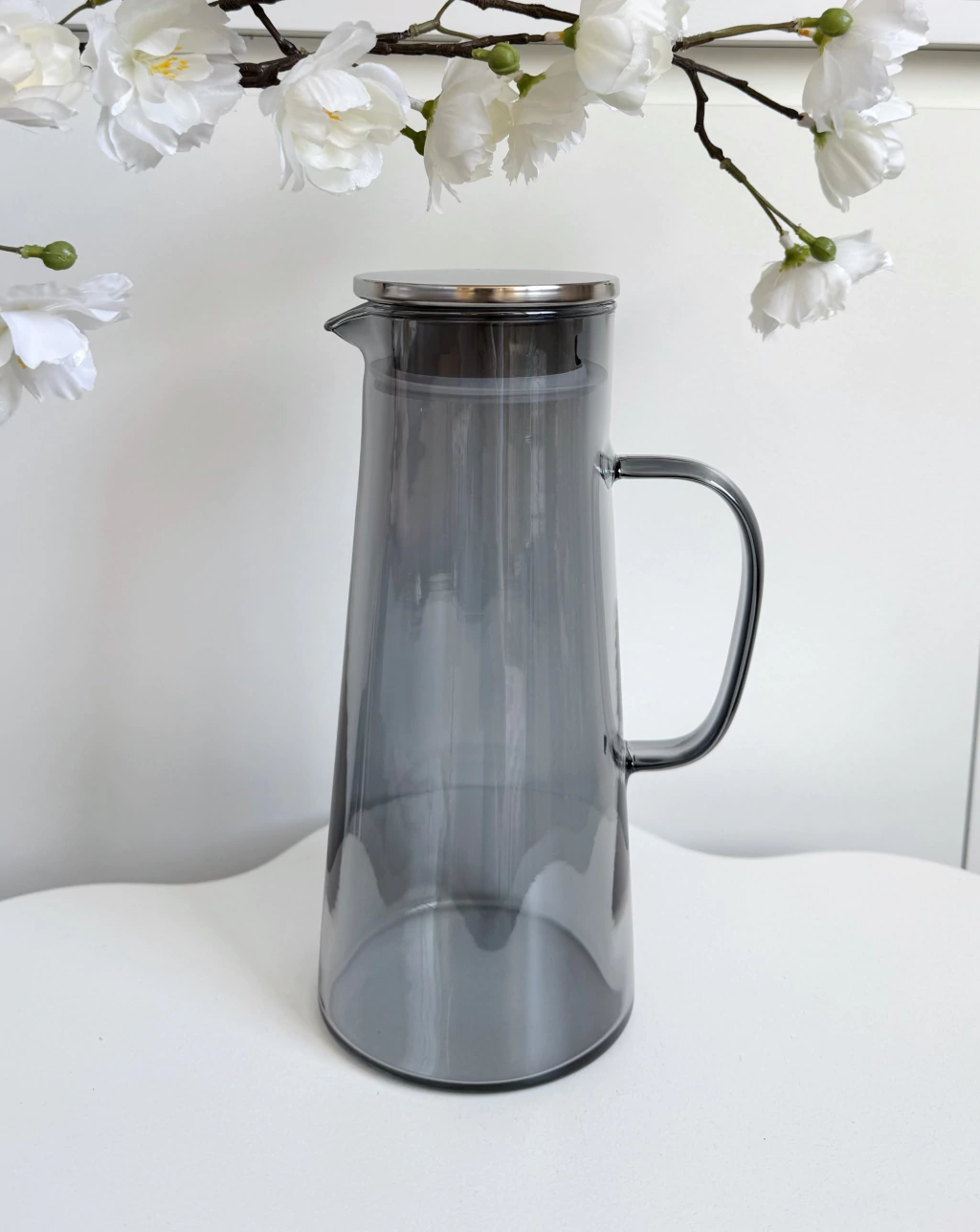 Jarra Itsand Slim 1.4lts Gris. Fabricada en vidrio cónico de alta calidad, cuenta con una tapa de metal que ayuda a conservar la frescura de tus bebidas. Su diseño moderno y capacidad de 1,4 litros la hacen ideal para servir agua, jugos o infusiones en el hogar u oficina. Fácil de limpiar y resistente, es la opción perfecta para tu mesa diaria.