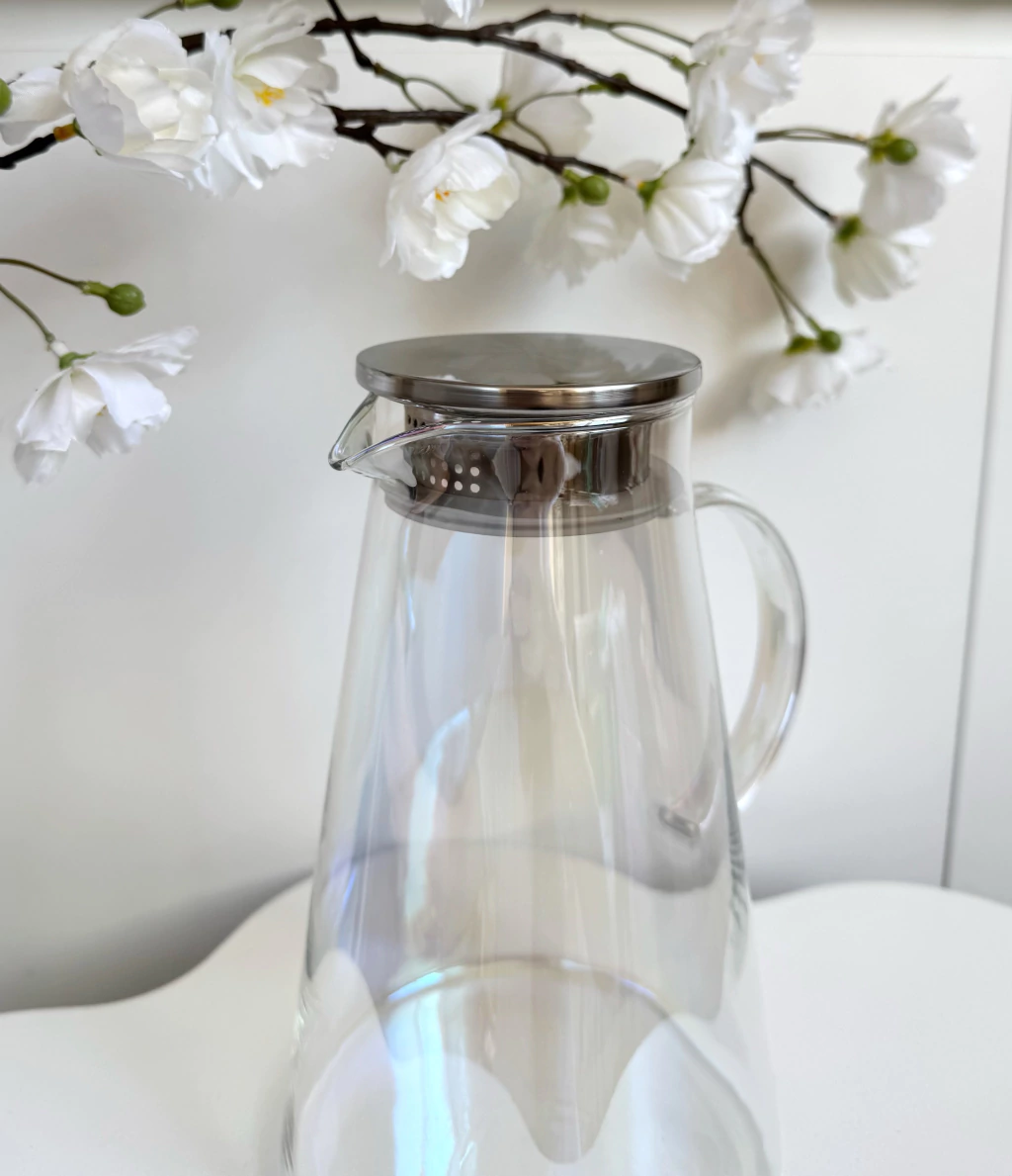 Jarra Treschic 1.8lts Perlada: Elegí elegancia y capacidad para tu mesa con esta jarra de vidrio cónica perlada, ideal para servir agua, jugos o infusiones. Su diseño sofisticado y su tapa de metal aseguran frescura y practicidad. Con 1,8 litros de capacidad, es perfecta para reuniones familiares o eventos. Añadí un toque de distinción y funcionalidad a tu hogar.