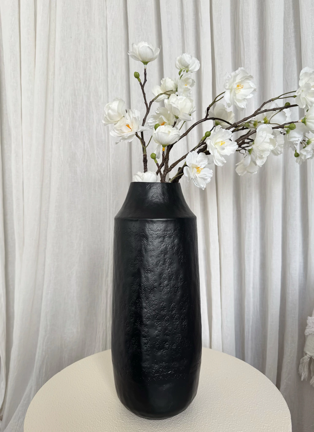 Descubrí el Jarrón Bhima Negro slim 36cm de VASSA, una pieza exclusiva de la línea Bhima. Confeccionado en aluminio importado de la India, su diseño ovalado (15x36 cm) aporta elegancia y sofisticación a cualquier ambiente. Perfecto para realzar la decoración de tu hogar u oficina. Tip de cuidado: limpiar con paño suave y seco, evitando la humedad para preservar su acabado premium.