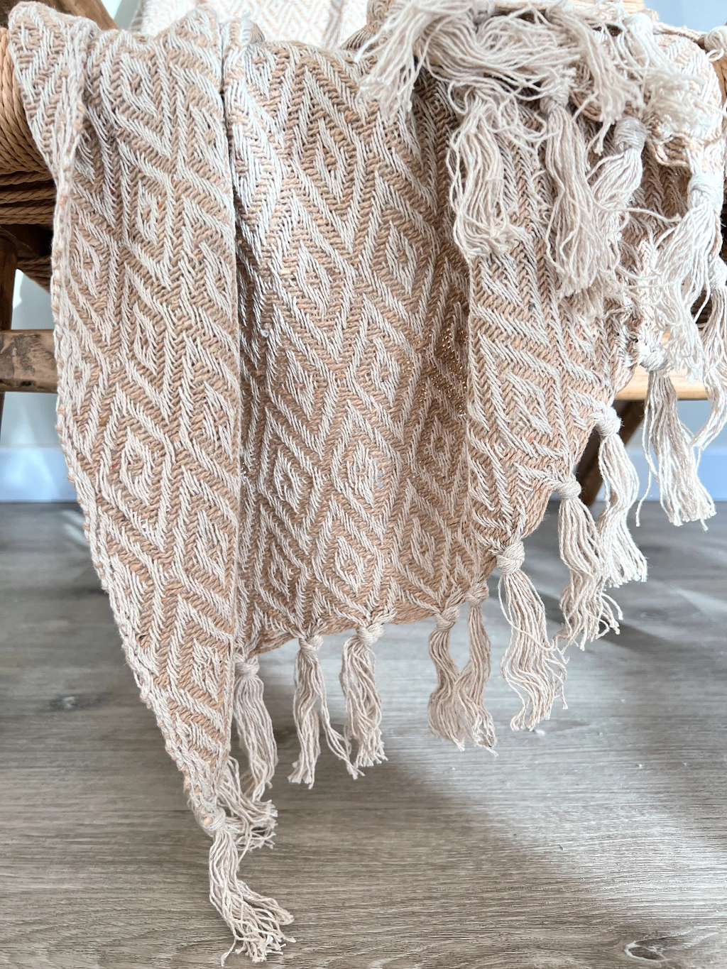 Manta con rombos chicos y flecos. 125x150cm algodon 100%