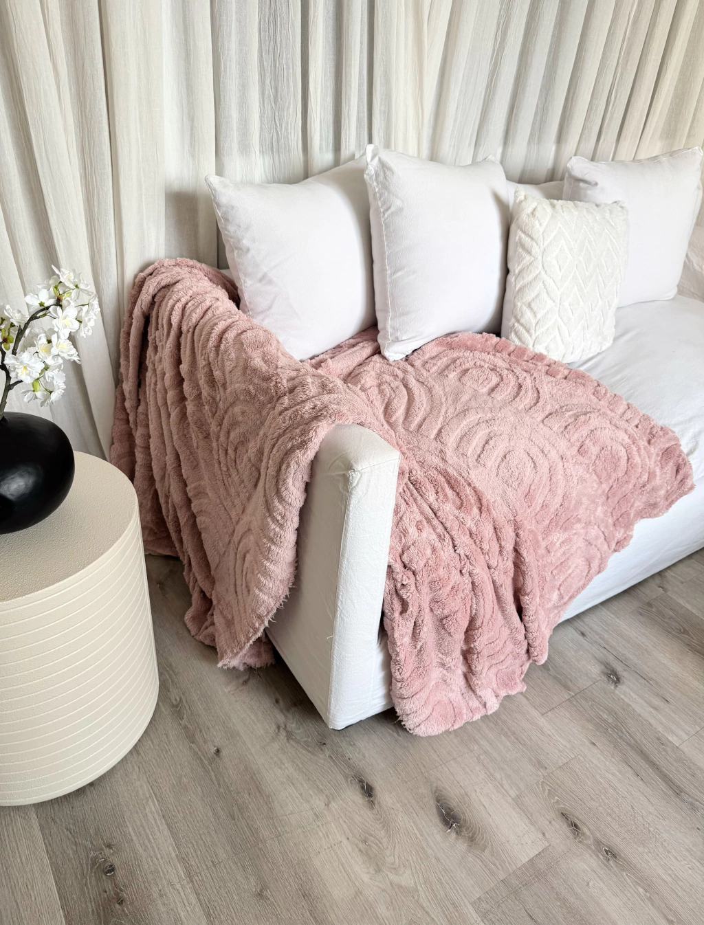 Manta Dash Rosa 150x210cm, confeccionada en 100% poliéster de alta calidad. Su pelo largo y suave brinda una sensación super calientita, ideal para el frío. El diseño presenta atractivas estampas en forma de arcos, sumando estilo a tu hogar. Medidas aproximadas: 150x210 cm. Origen: China. Perfecta para el dormitorio o living, esta manta es práctica y decorativa.