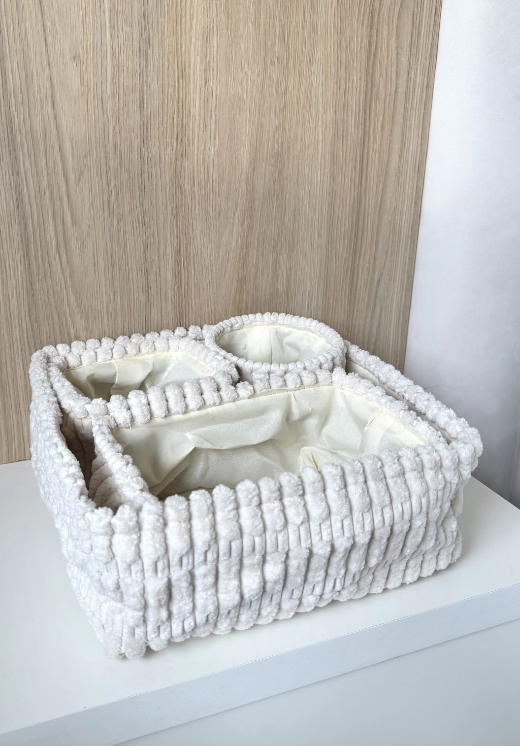 Descubrí el set x4 canastos de tela color natural, compuesto por un canasto rectangular, uno redondo y dos cuadrados. Ideales para organizar tu hogar con estilo y practicidad. Medidas: 13x12cm, 15x15x12cm, 25x15x12cm y 31x31x13cm. Su diseño versátil y materiales resistentes los convierten en la opción perfecta para mantener cualquier espacio ordenado y elegante.