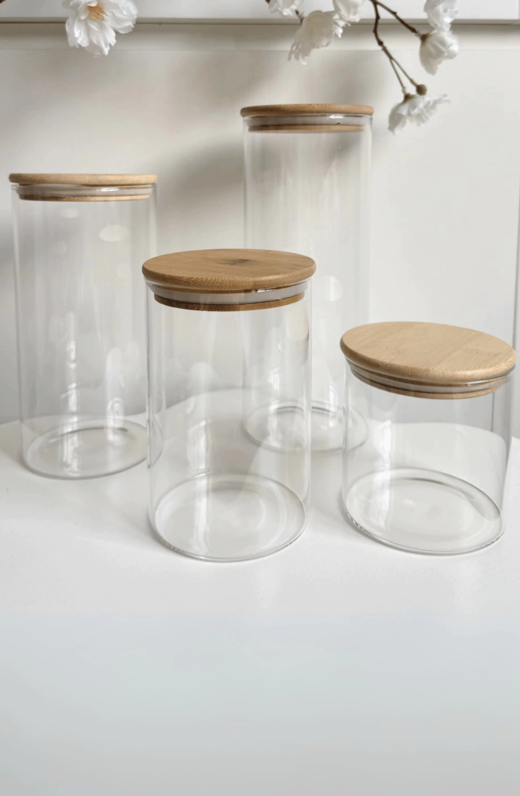 Set x4 Frascos Coco, la solución perfecta para organizar tu cocina con estilo y practicidad. Cada frasco de vidrio cuenta con cierre hermético y tapa de bambú, preservando la frescura de tus alimentos. Incluye tamaños de 550ml, 1lt, 1.3lts y 1.650lts. Ideales para granos, especias o snacks, aportan un toque natural y moderno a tu hogar.