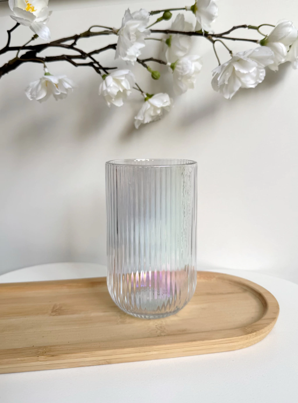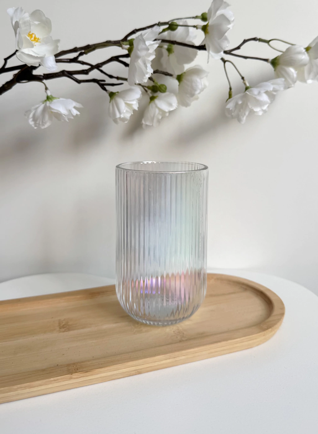 Disfrutá de tus bebidas preferidas con este set de 6 vasos de vidrio redondos con líneas tornasoladas. Cada vaso tiene una capacidad de 420ml y medidas de 12,5 cm de alto x 8 cm de ancho. Su diseño moderno y acabado tornasolado aportan elegancia a tu mesa, ideales para reuniones o uso diario. ¡Sumá estilo y practicidad a tu hogar!