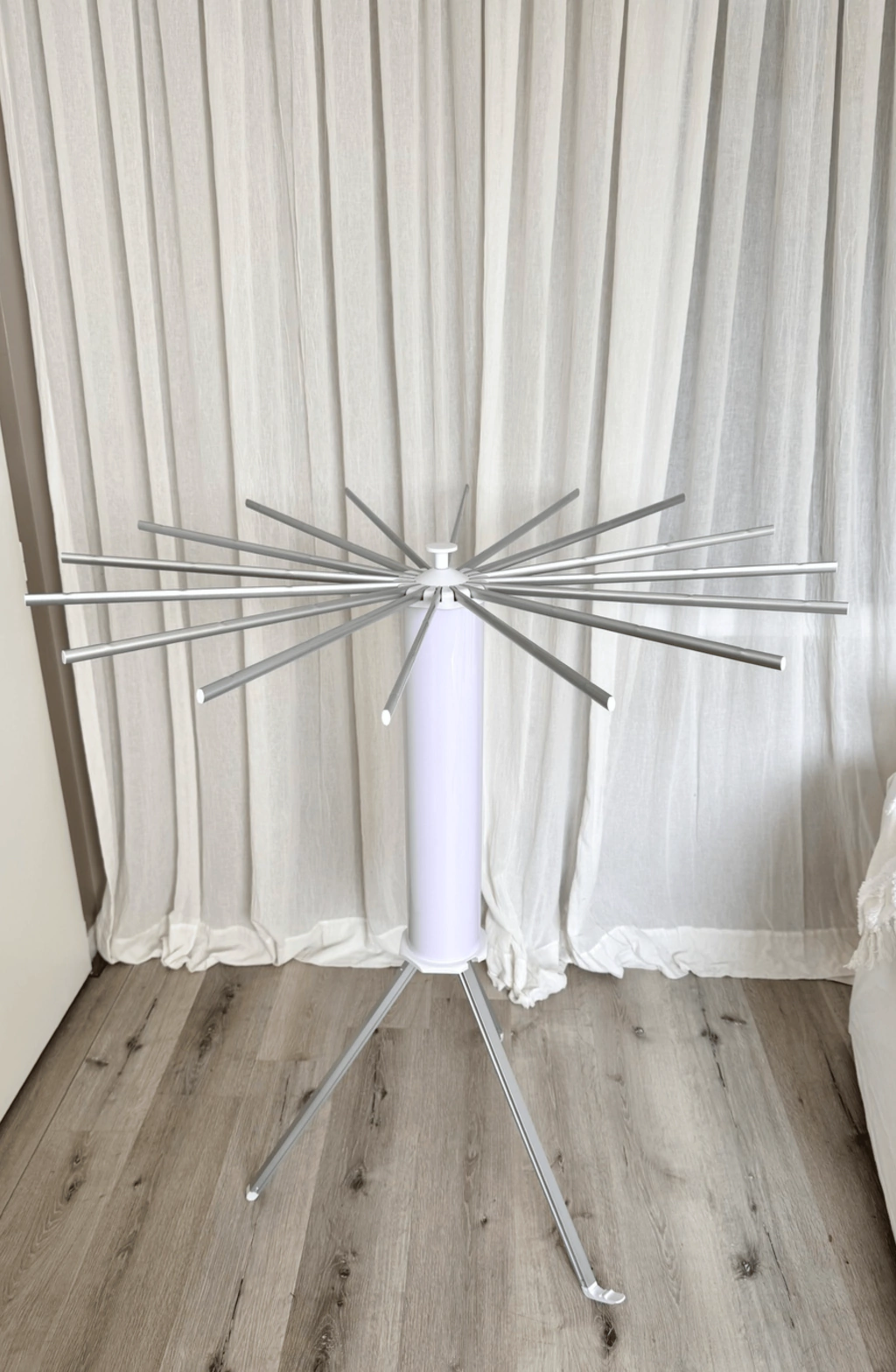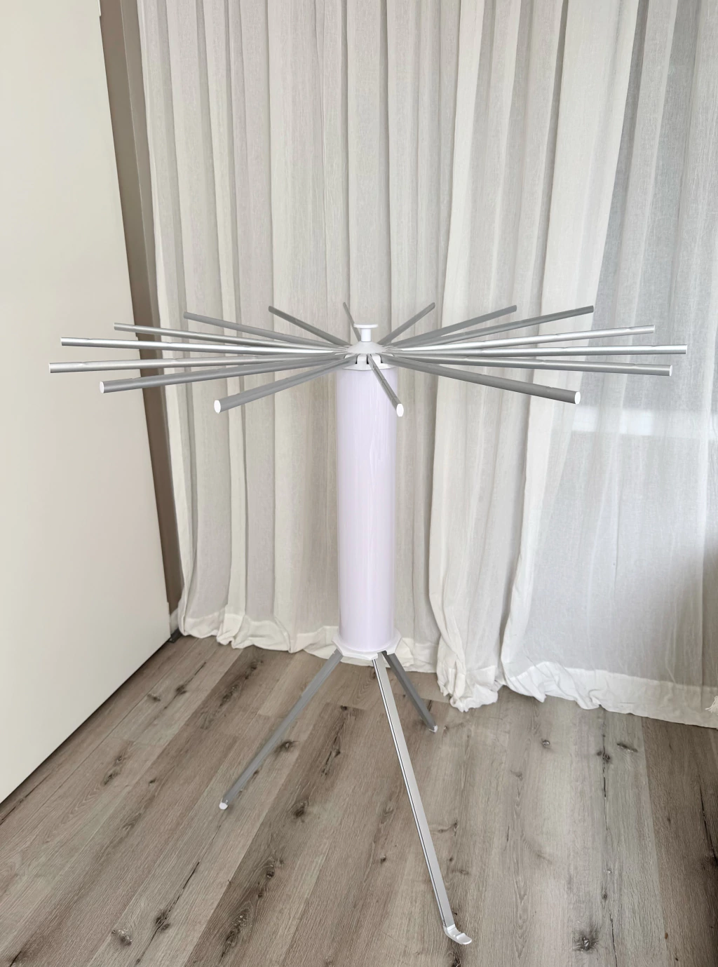 Descubrí el Tender Wiston 3 Patas, un secarropas cilíndrico fabricado en aluminio de alta calidad. Cuenta con 16 varas y mide 50 cm de diámetro y 120 cm de altura, brindando amplio espacio para secar tu ropa de manera eficiente. Sus 3 patas ofrecen gran estabilidad y resistencia. Ideal para uso en interiores y exteriores, es práctico, liviano y fácil de trasladar. ¡Optimizá tu espacio de secado!