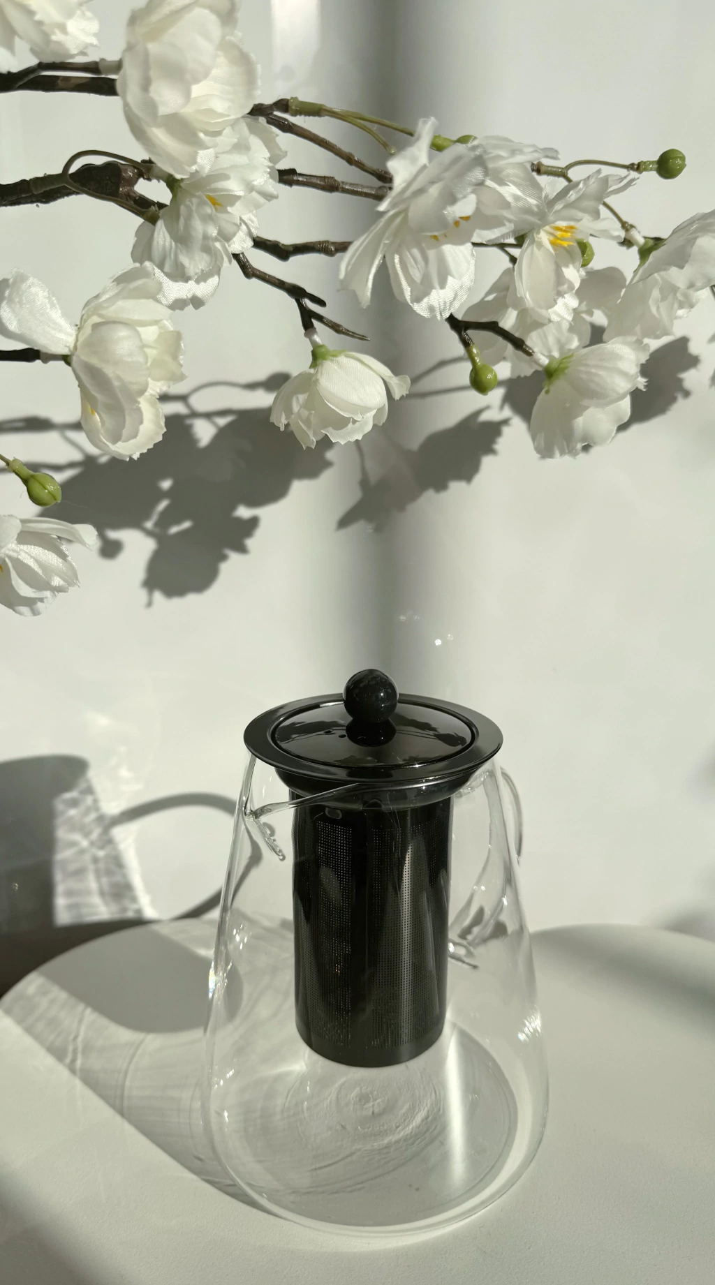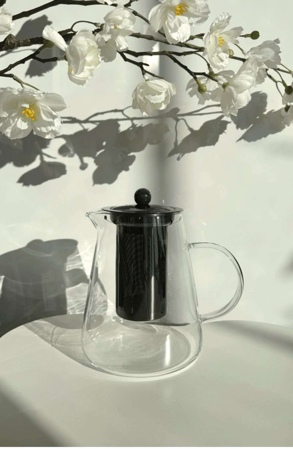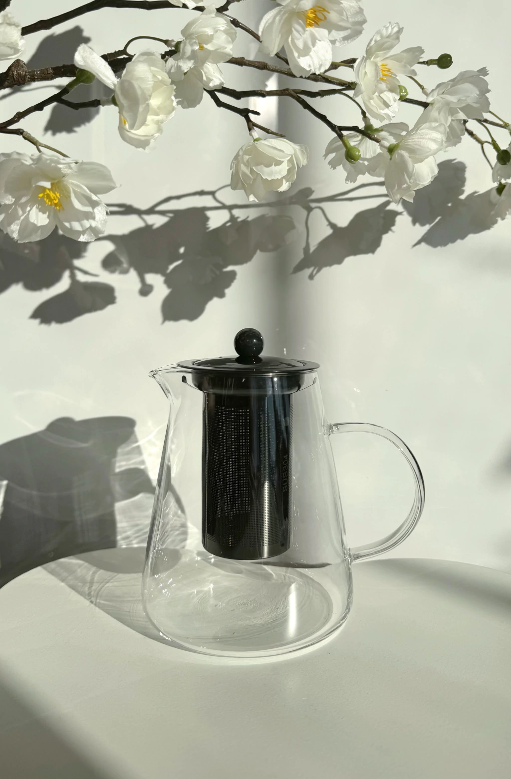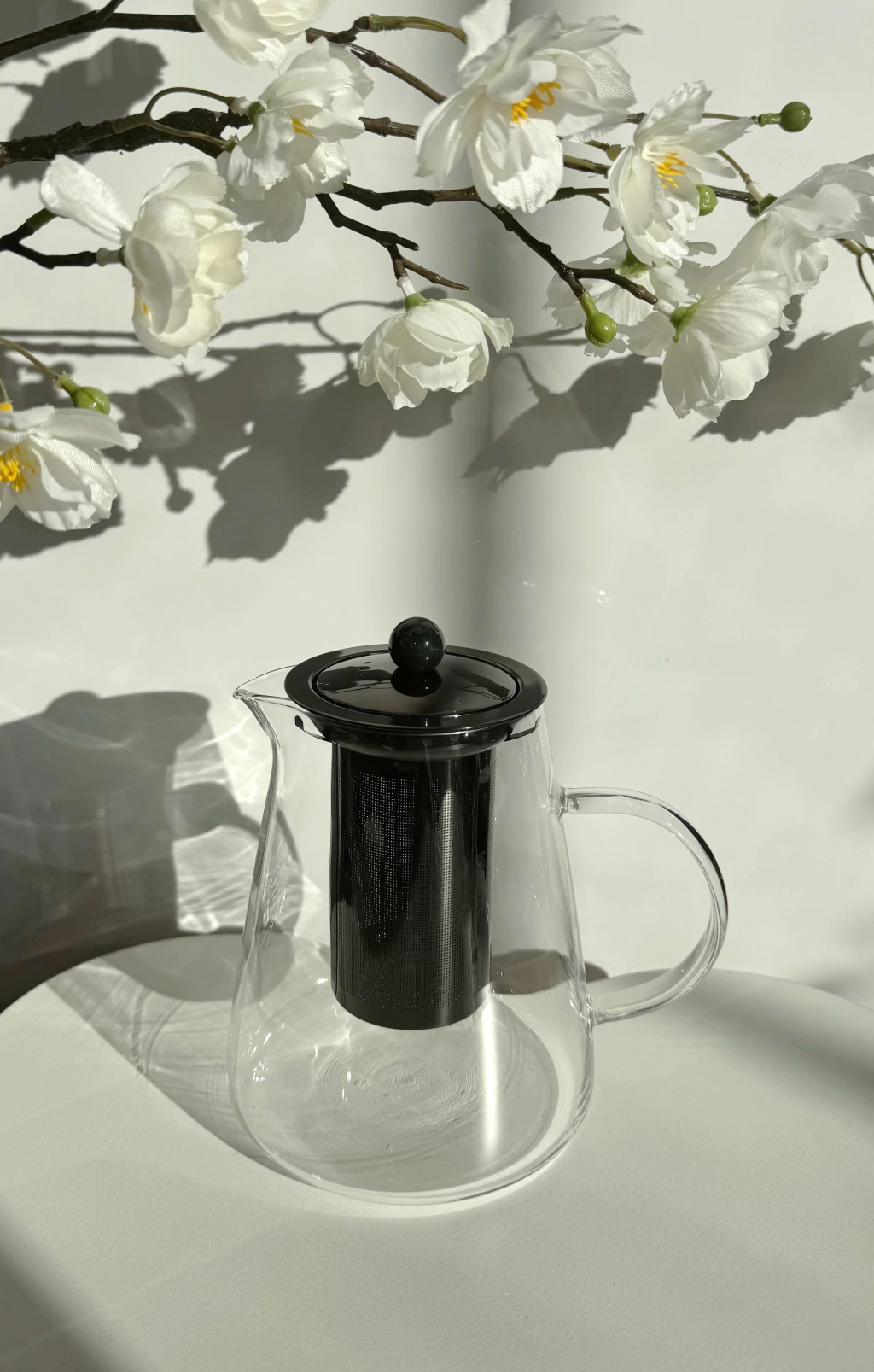 Descubrí la elegancia y funcionalidad de la Tetera Minga 950ml. Fabricada en vidrio cónico resistente, cuenta con filtro integrado y un cómodo mango de metal color negro, ideal para preparar té e infusiones. Su capacidad de 950ml la hace perfecta para compartir. Aporta un toque moderno a tu cocina u oficina, combinando diseño y practicidad en cada uso.