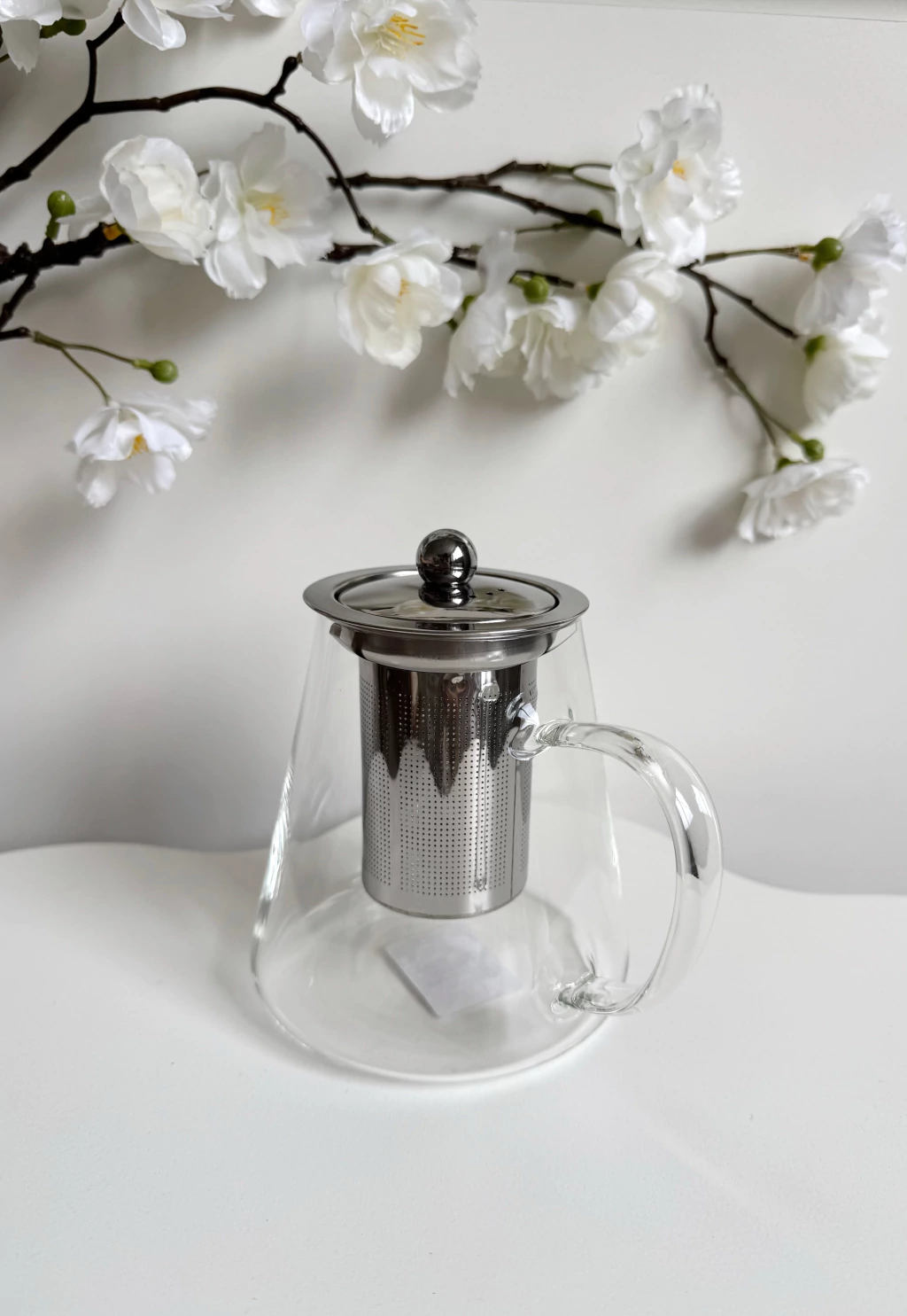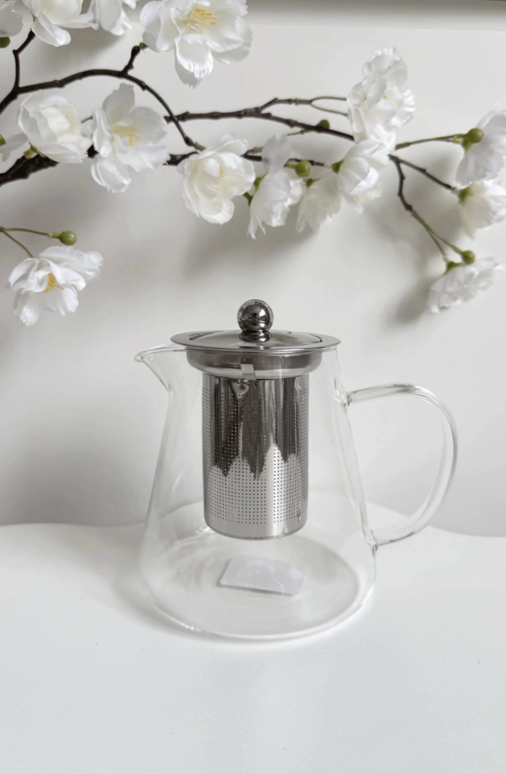 Tetera cónica de vidrio con filtro y tapa de metal Momi 750ml, ideal para preparar y servir tus infusiones favoritas. Su diseño transparente permite apreciar el color del té, mientras que el filtro integrado facilita una experiencia libre de hojas. Capacidad de 750ml. Fabricada en China, es perfecta para el hogar u oficina, combinando practicidad y elegancia en cada uso.